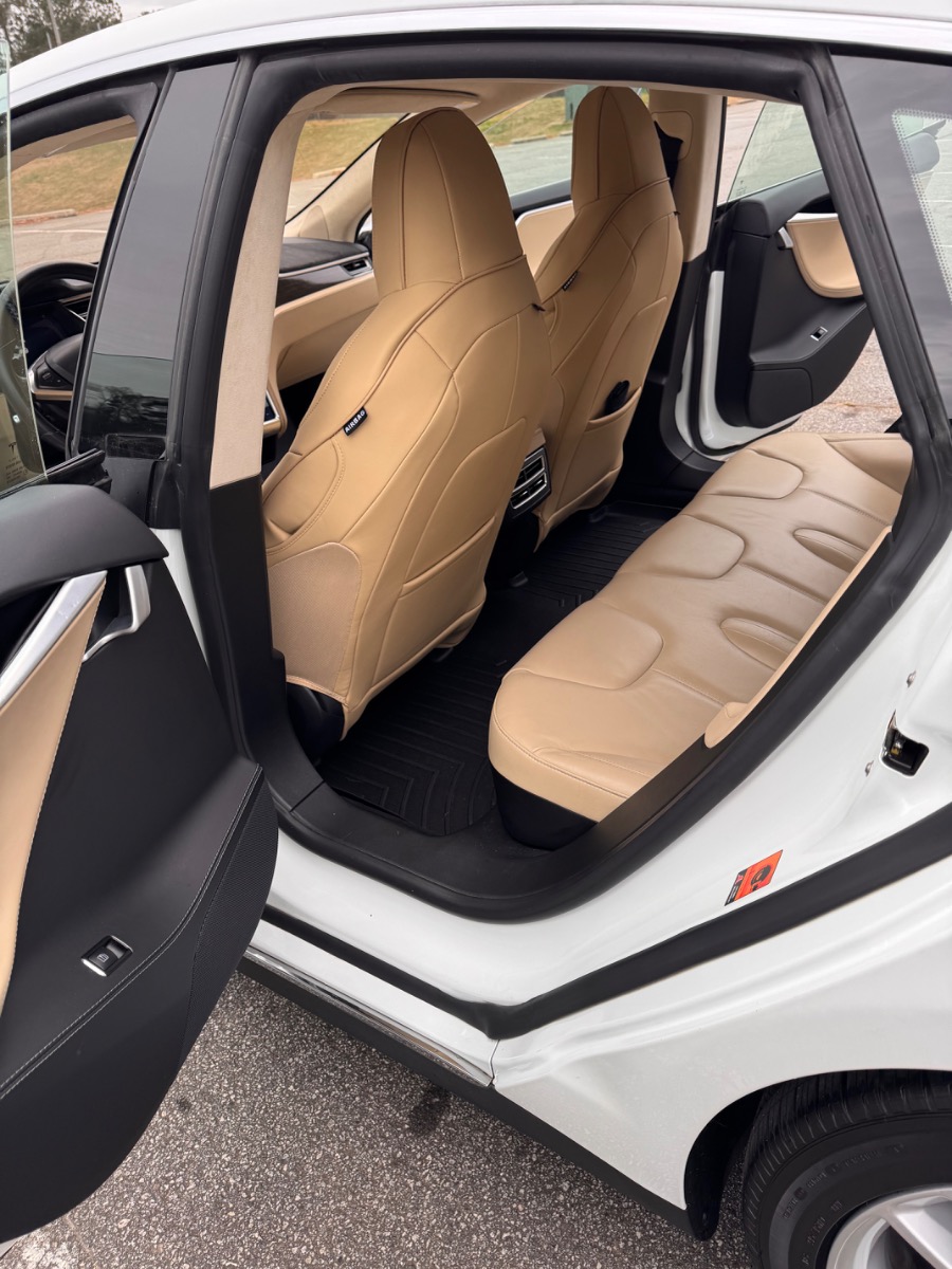 2015 Tesla Model S 70 RWD. Pearl white exterior color with Ceramic coated protection. Driven mainly for back and forth to work. No crazy driving done with this car. All factory cloth mats and interior covers still in great condition. All weather Tesla mats are included. Sound system and hands free calling system in perfect working order. Factory mileage is 240 mpg. Battery performs outstanding. No battery service needed other than replacing 12volt when necessary. New RWD system installed in May of 2024, as well as new wheels and previously mentioned 12volt battery. Entire vehicle is like new inside and out. Included: All weather car cover, Rubberized license plate holder, Charger cable w/ adaptarse and sunscreen cover.