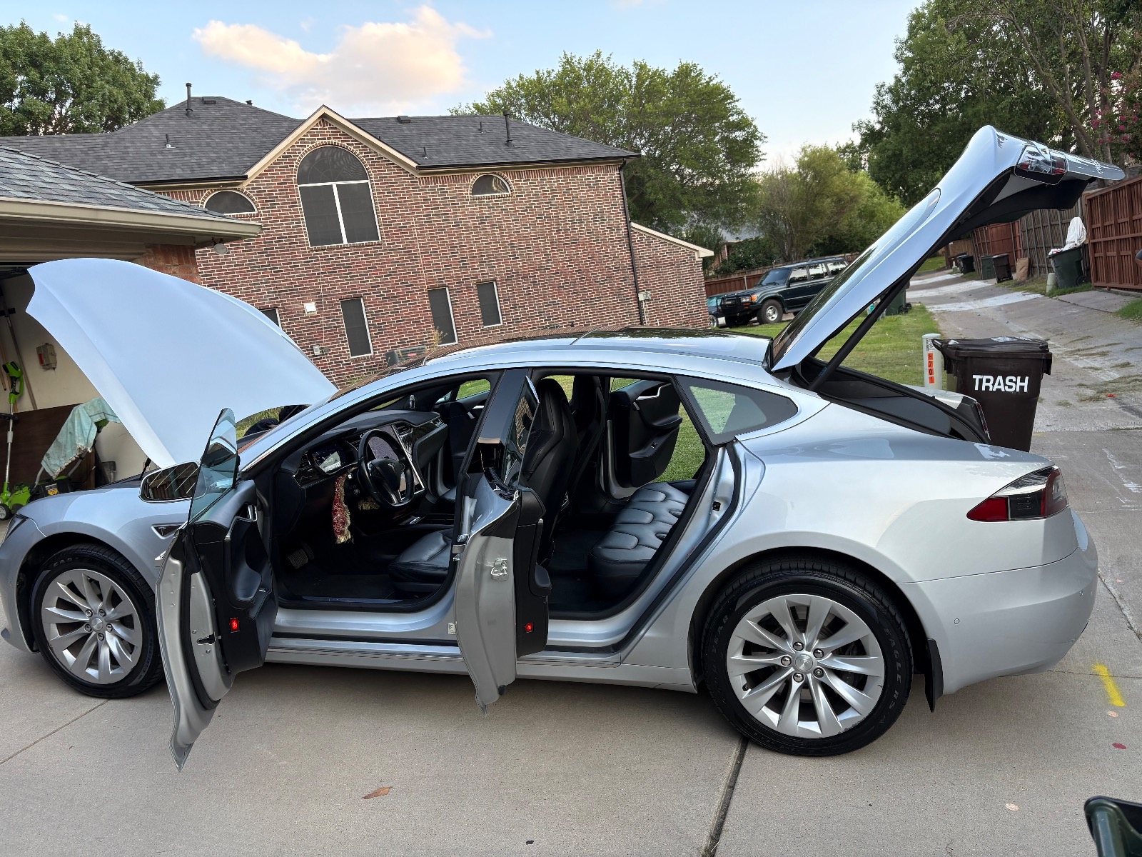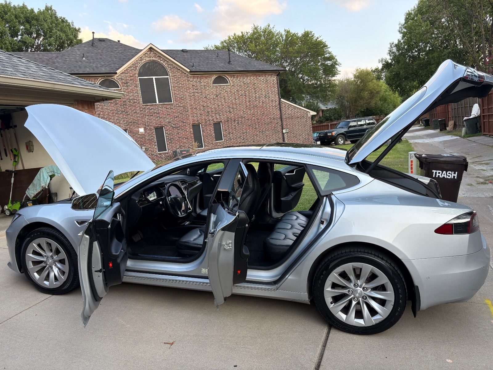 2016.5 Tesla Model S 90D Silver Metallic 90K Miles Title in Hand 263Miles range no loss Front Tires 9/12 Rear Tires 11/12 All Wheels New 2 Key FoBs New Cabin Filter Brake Fluid Replaced Premium Connectivity no monthly charges MCU Upgraded to 2.0 Specs Ultra High Fidelity Sound Autopilot with convenience features Black Brake Calipers No Cold Weather Package Glossy Obeche Wood Décor GPS Enabled Homelink Premium Upgrades Package Sunroof Black Next Generation Seats Smart Air Suspension Power and Lighting Package Black Headliner 19″ Silver Slipstream Wheels Pay Per Use Supercharging