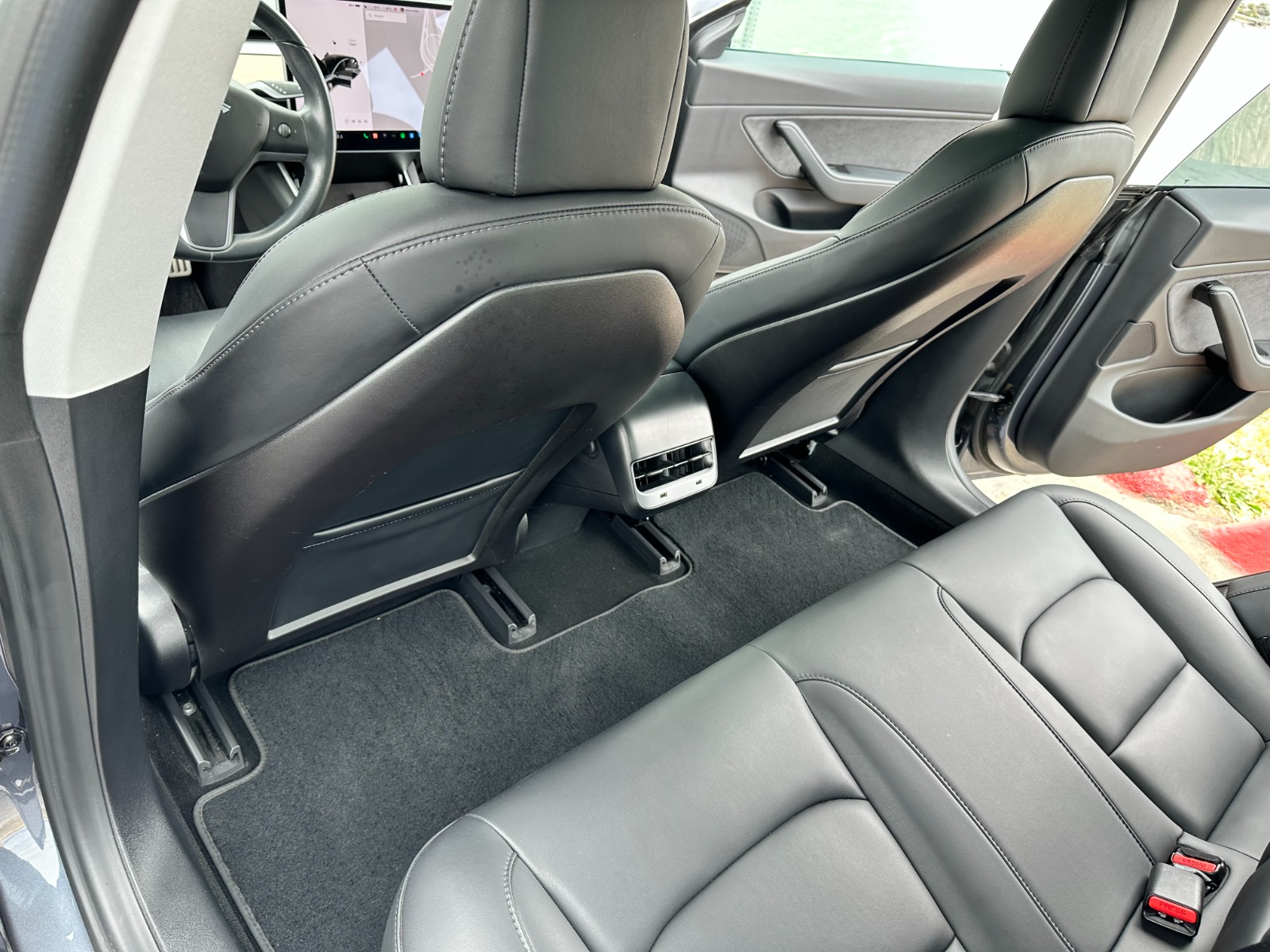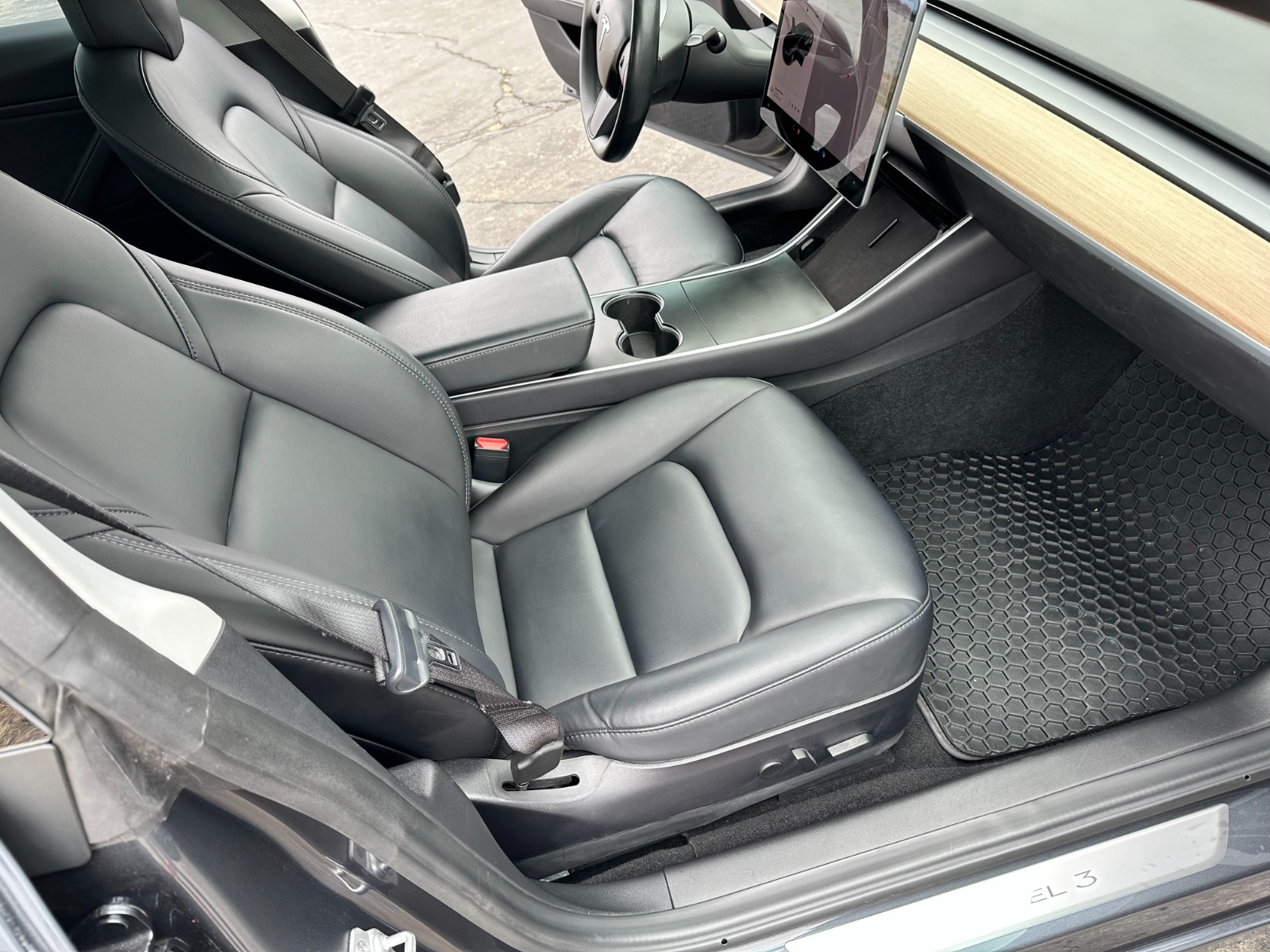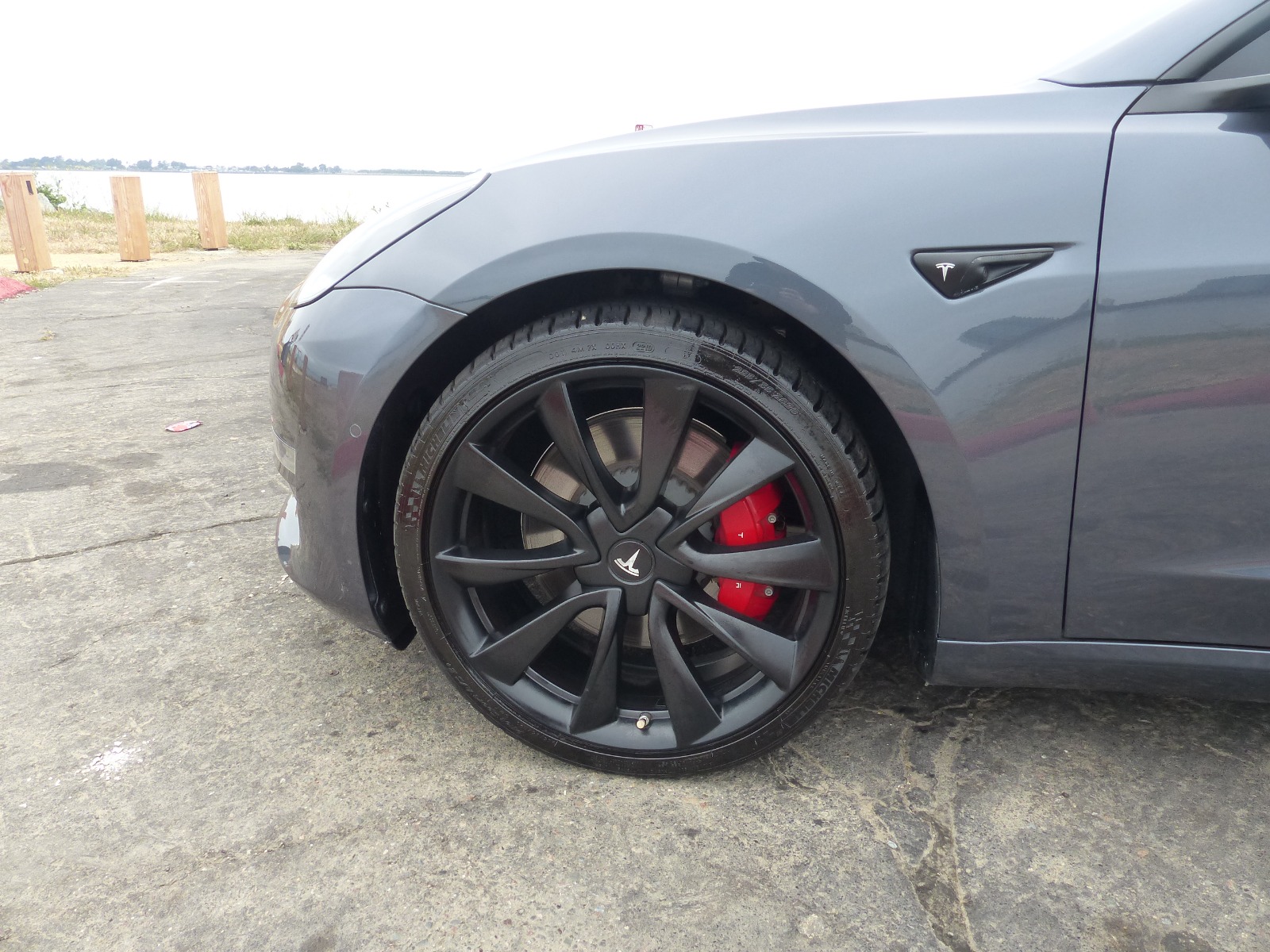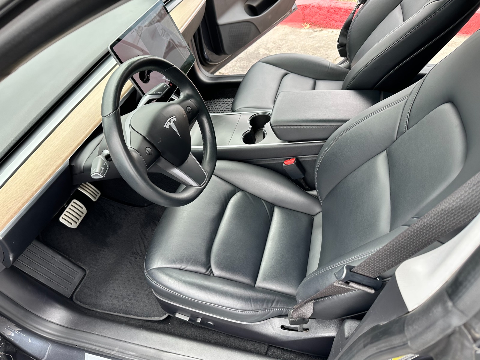Single owner vehicle with very low mileage and clear title in hand. This is an extremely clean and very well-cared-for vehicle in almost immaculate condition. Unfortunately, there is one small door-ding just behind the rear driver-side passenger door, as shown in pics. Everything else is in excellent condition. Extremely low miles with little battery wear(mostly highway). Very attentive driver and well-taken care of vehicle that has been regularly detailed. Comes with two key cards, a Tesla roof rack(new in the box & never installed), a custom car cover by Evannex, Jeda wireless dual charge pad(installed), 1-TB USB, and has Chrome delete treatment with Window tint(all around) plus interior Tesla glass roof shades. In addition, a complete set of aftermarket sport rim wheels is included in the price. These can be used for track runs or seasonal purposes. These extra wheels are 20″ matte black with mounted tires(Michelin Pilot Sport A/S 3 with <10k miles of wear). Each wheel is enclosed in a separate Tesla tire tote case.