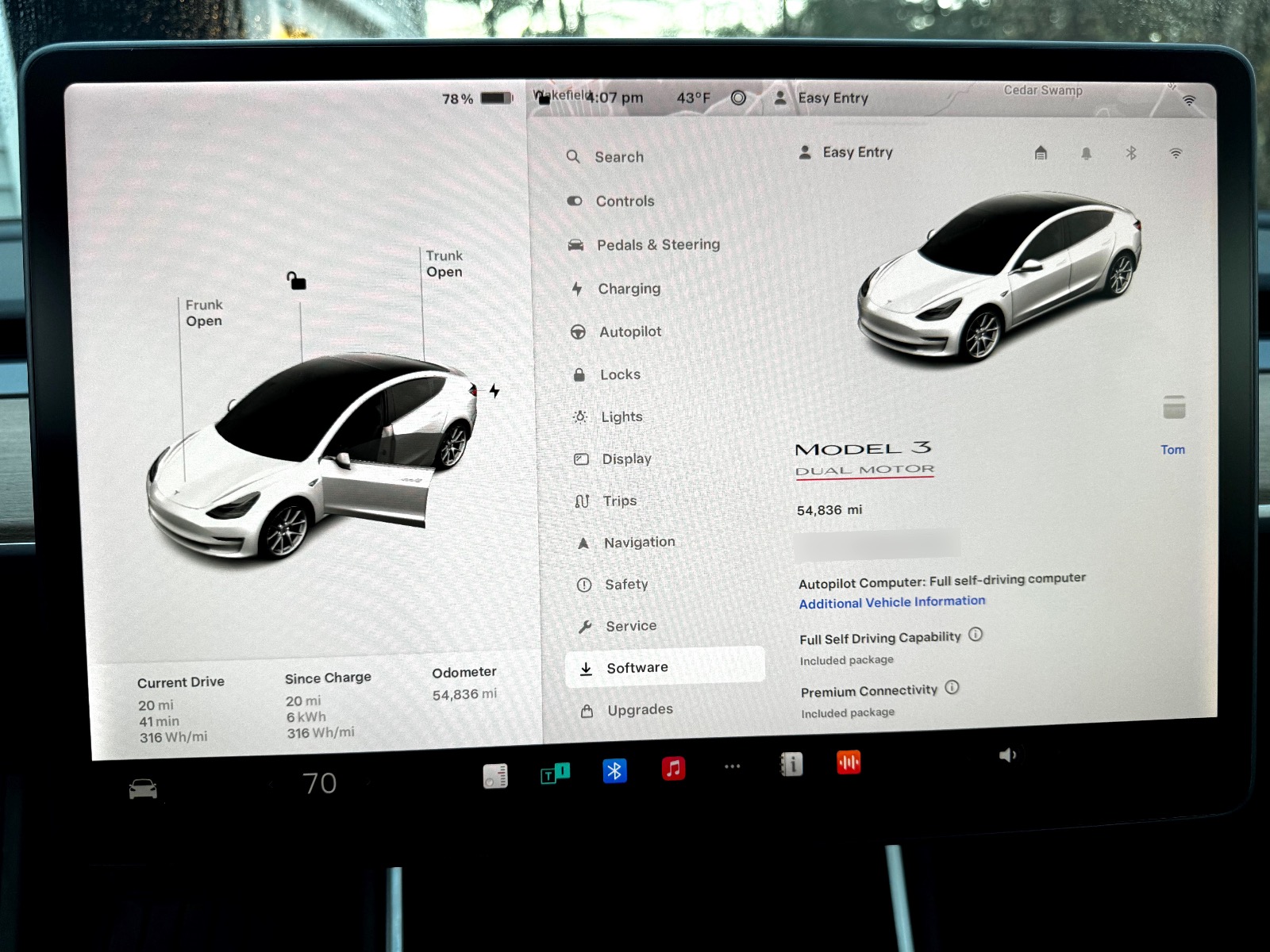 2018 Model 3 Performance. Full self driving. Unlimited free premium connectivity. Battery and drive train warranty unitl August 15, 2026. TSW Nurburgring 20″ wheels with Michelin Pilot Sport 4s tires. Includes extra set of winter wheels on stock 18 rims and Michelin X-Ice tires.