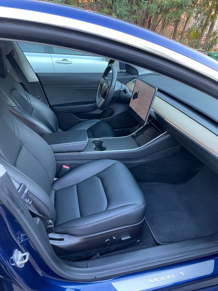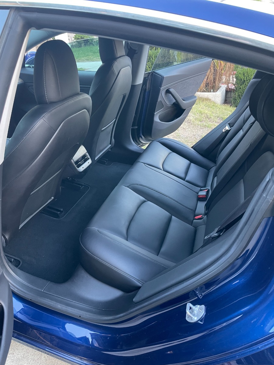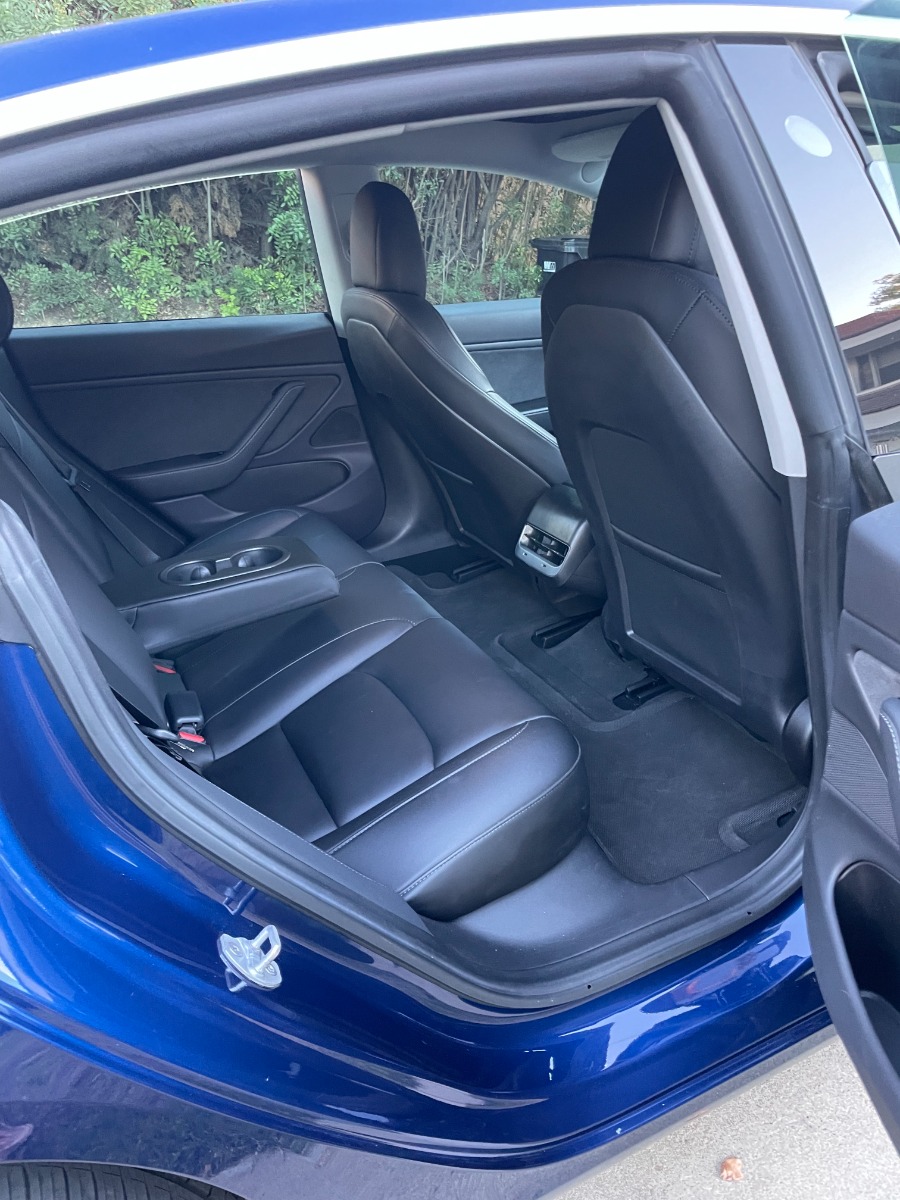 A full charge can go 280 miles. Back seats are rarely used. Monitor covered with screen protection. Center-interior area was covered with scratch-proof stickers.