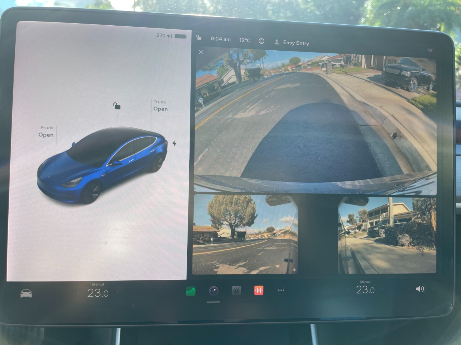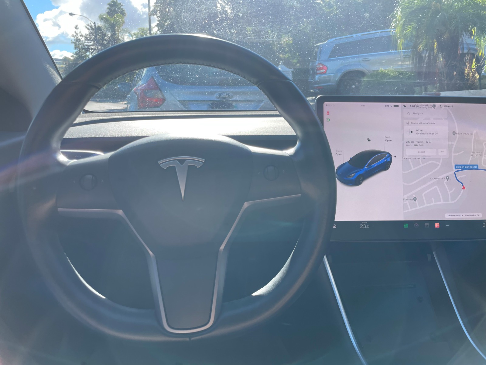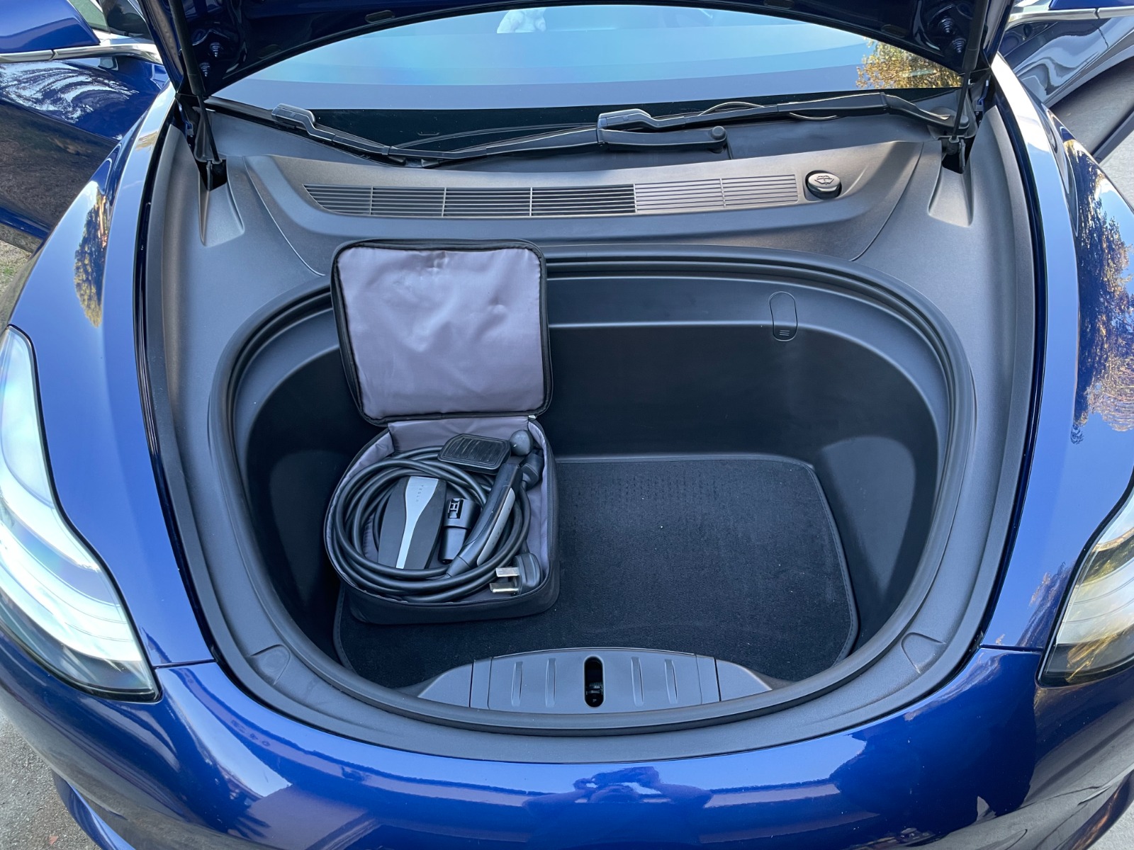 A full charge can go 280 miles. Back seats are rarely used. Monitor covered with screen protection. Center-interior area was covered with scratch-proof stickers.