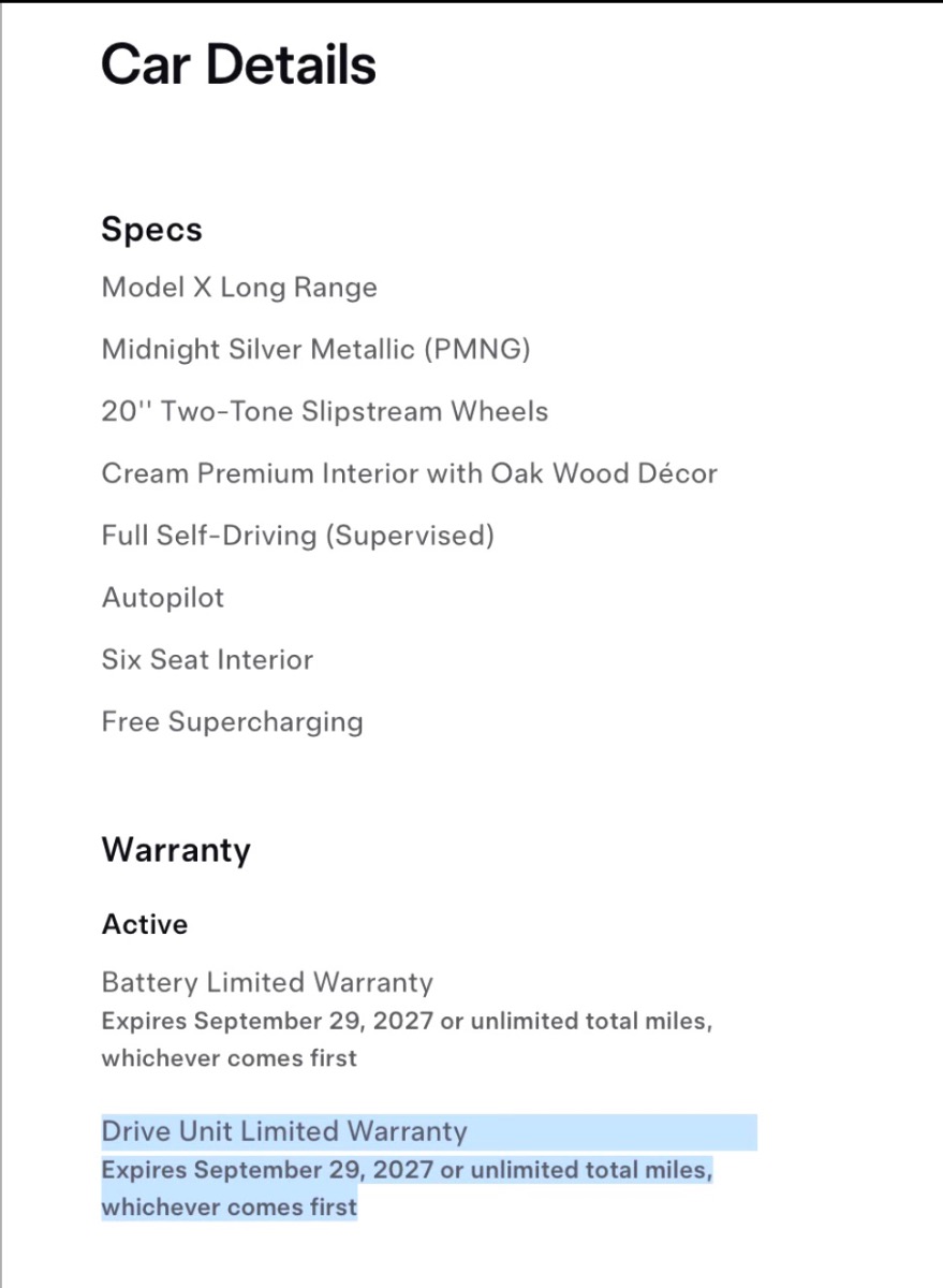 Battery Limited Warranty Expires September 29, 2027 or unlimited total miles, whichever comes first