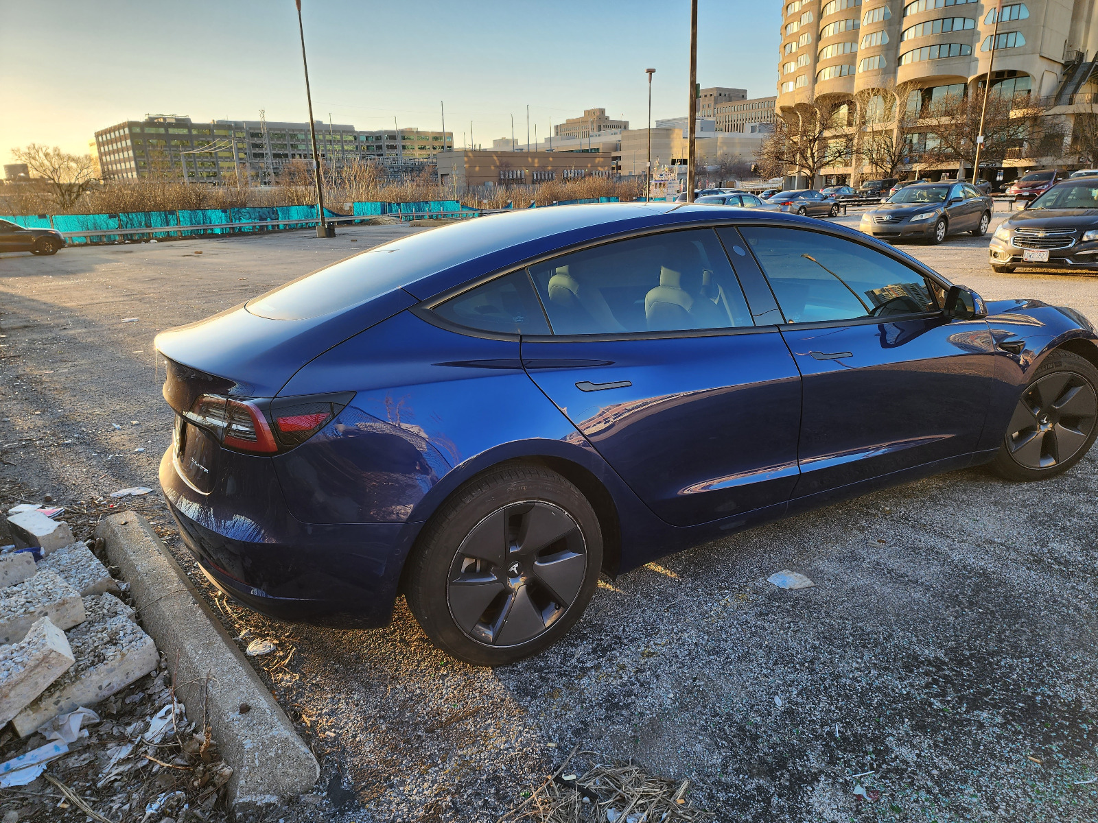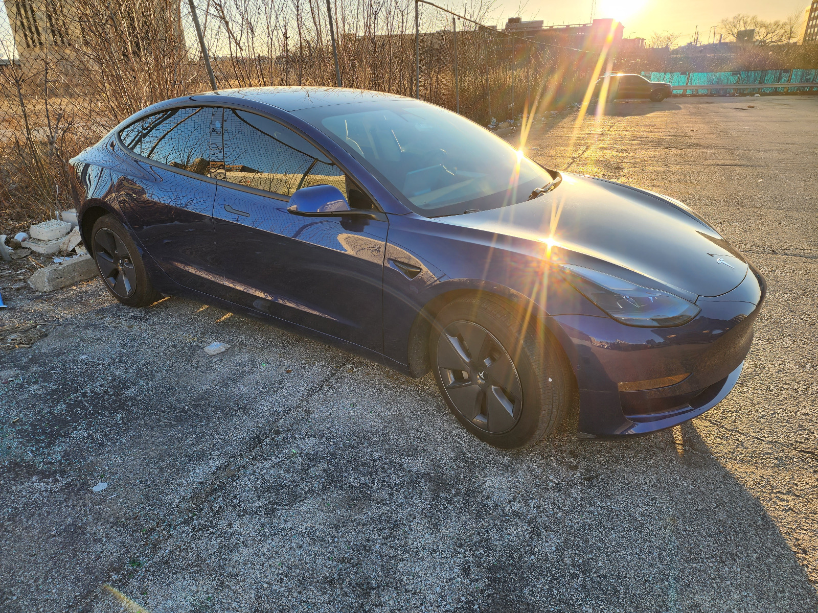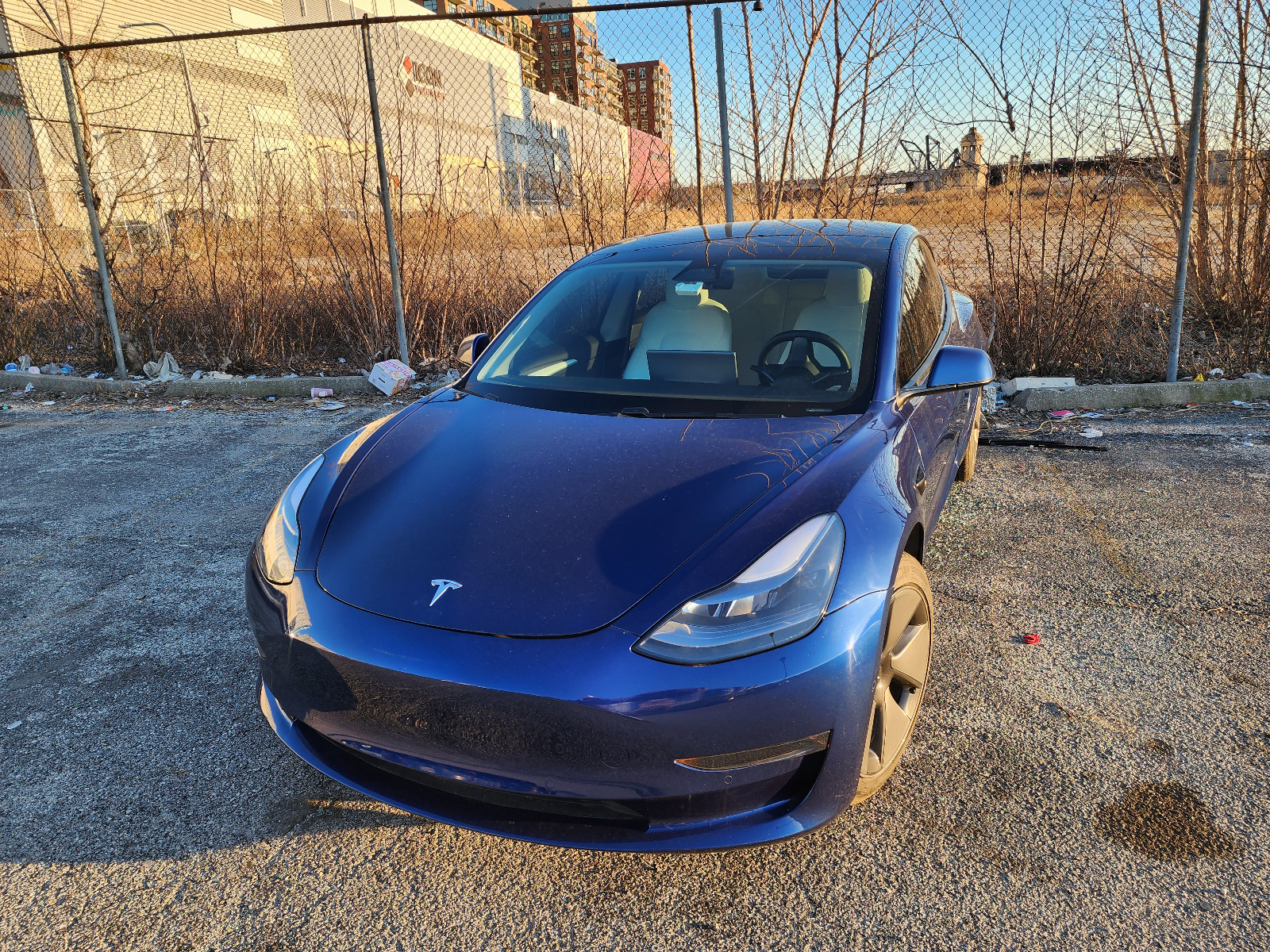 2021 Tesla Model 3 Long-Range with blue metallic exterior and a white and black interior. 12,190 miles and in excellent condition. Kelley Blue Book value estimate from $48,467 to $54,058. I am selling this car because I would prefer to not own a car.