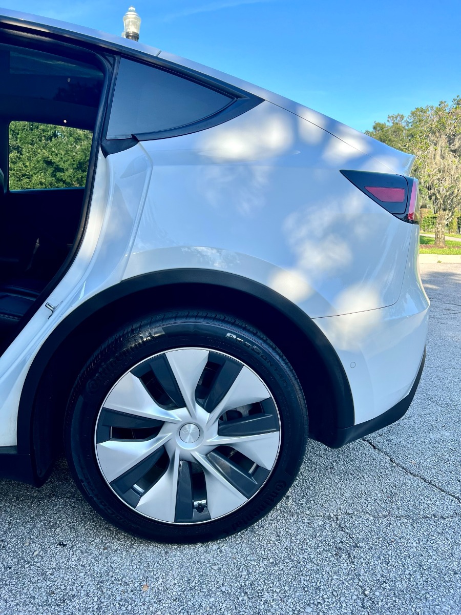 5 seat, white exterior, black interior, full glass roof, 19″ gemini wheels