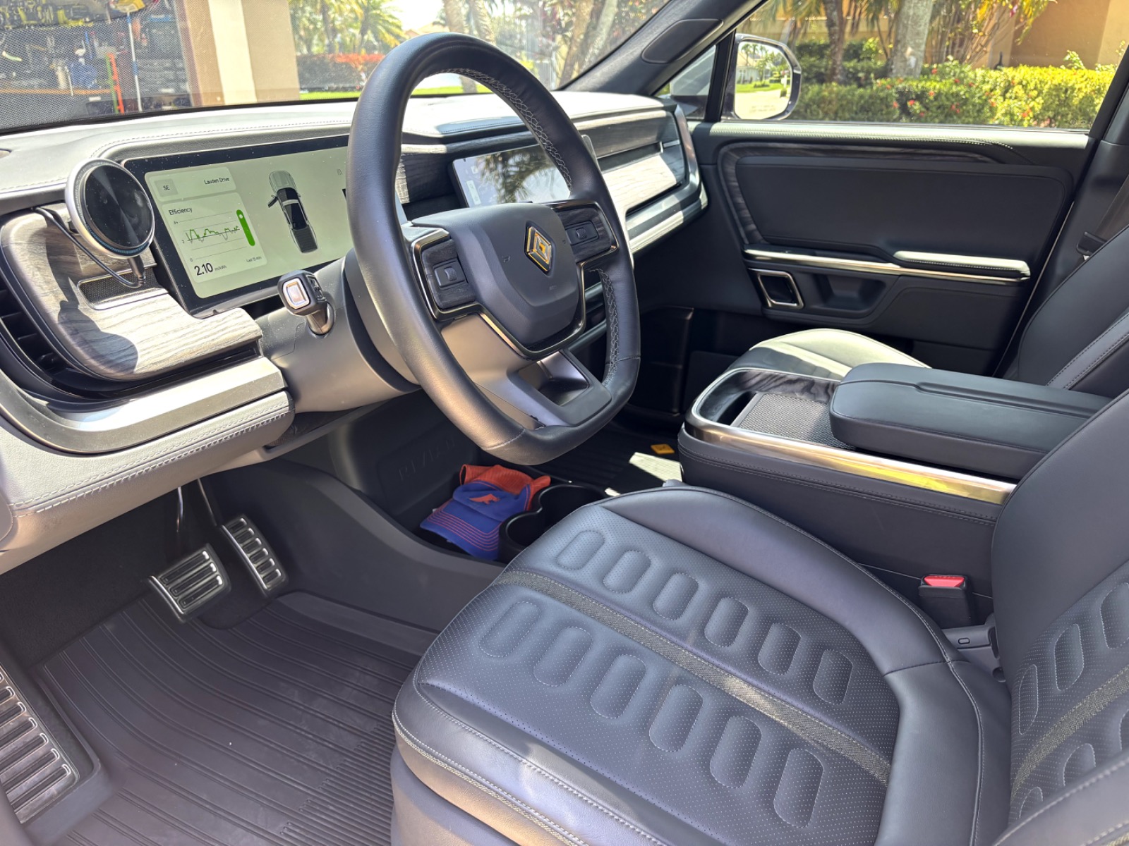 Comes with Rivian Bluetooth Camp Speaker, Apple Carplay, Rivian Portable Charger, NACS DC Adapter, R1T All Weather Floor Mats, All Weather Mat for Frunk, Wireless Console Charging, R1T Gear Tunnel Mat, AUX Air Compressor Kit, Rivian Torch (in drivers door), Gear Guard Cable, Console Vault for Center Console, Tire Sealant Kit, and First Aid Safety Kit. Please contact with any questions or concerns. Being sold privately.