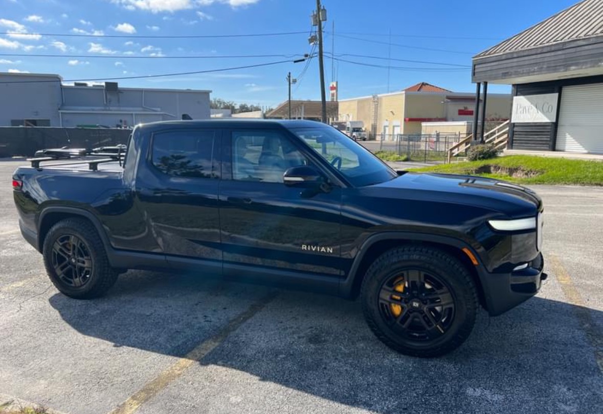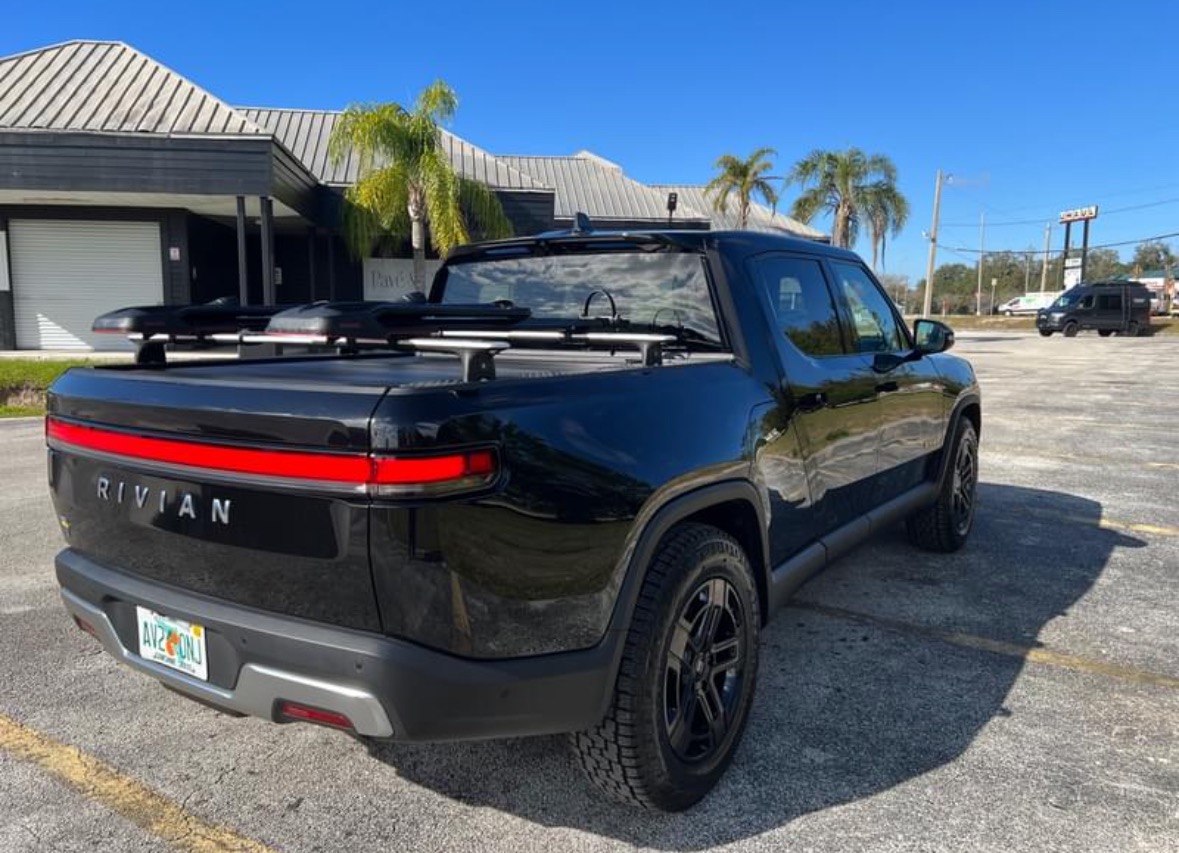 2022 Rivian R1T Asventure Quad Motor Large Pack with Brand New all terrain tires, tonneau cover two racks and bike mounts.