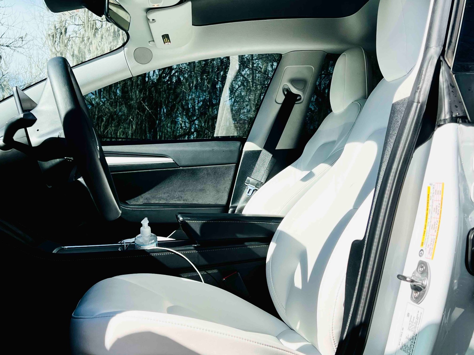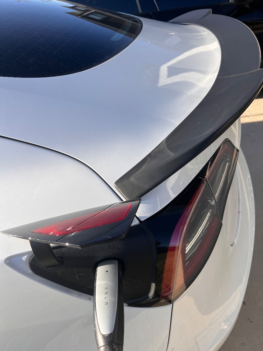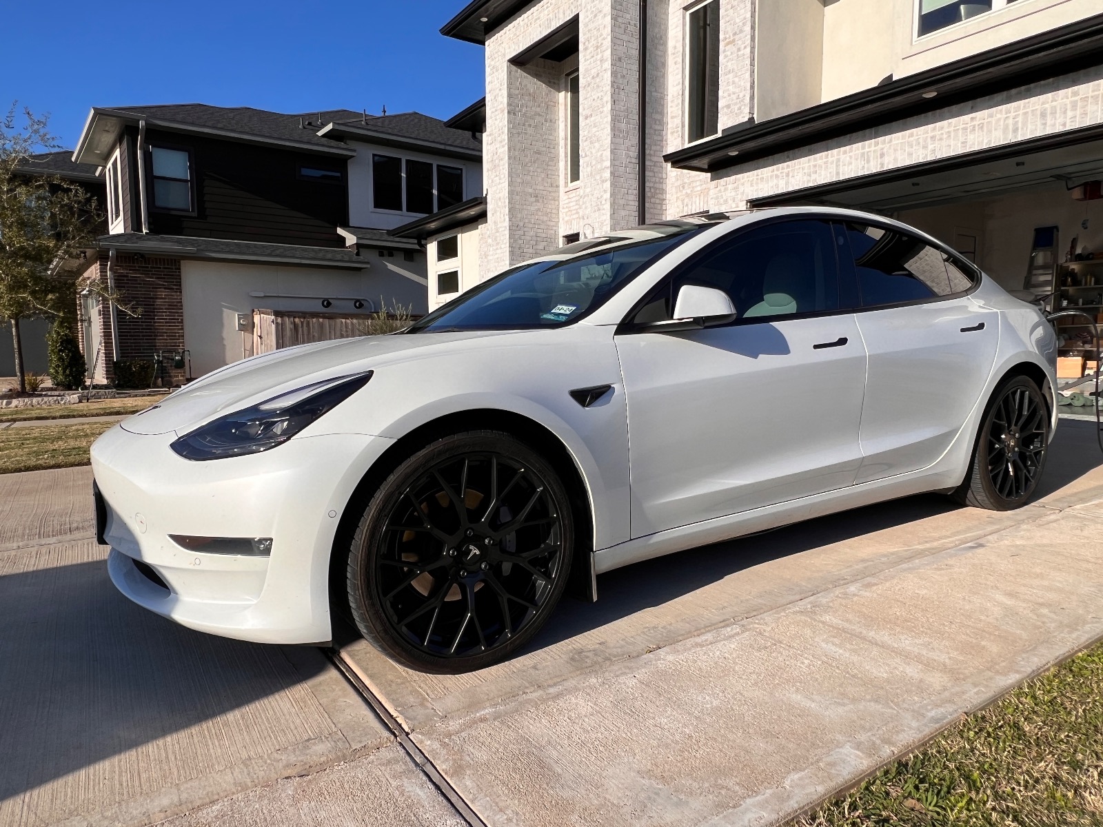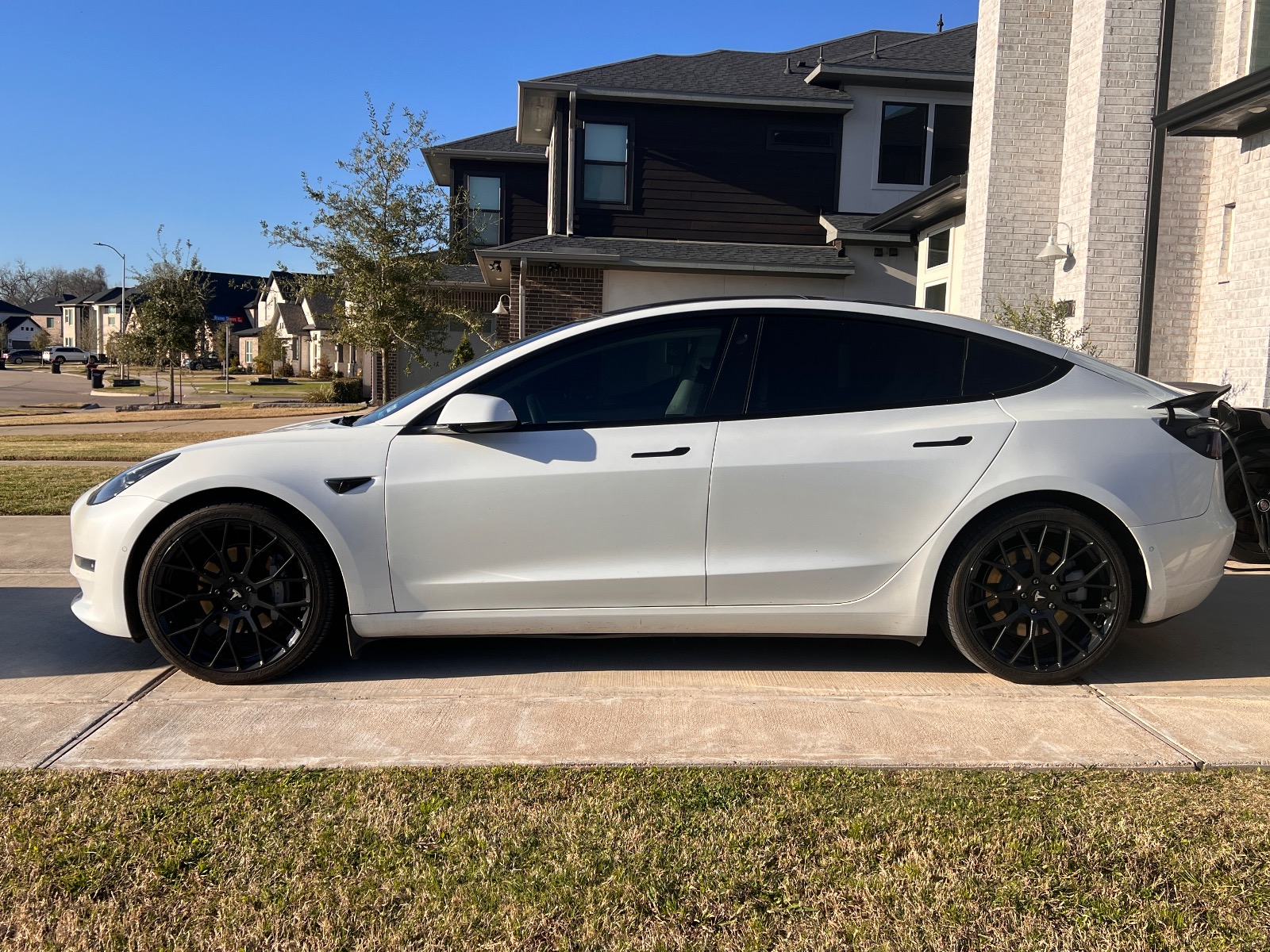White interior and better wheels and tires then the ugly stock ones (cost me $2k) plus spoiler. Premium high quality heat resistant tint all around even the front windshield is heat resistant. Yes comes with charger