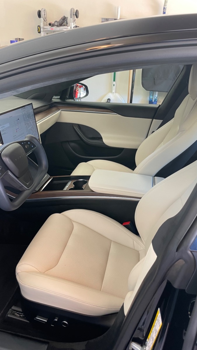 This beautiful Tesla is in perfect condition! Must see! Owner is buying the Model X and wants to sell. The car has low miles and plenty of amenities. It has been garage stored. The lovely cream leather and warm walnut trim pairs beautifully with the shiny black exterior. The air suspension makes this car glide! So many cool features, and so little space to describe! It’s a must drive!