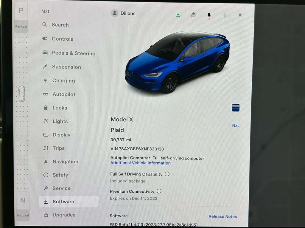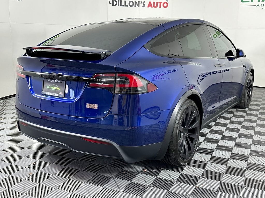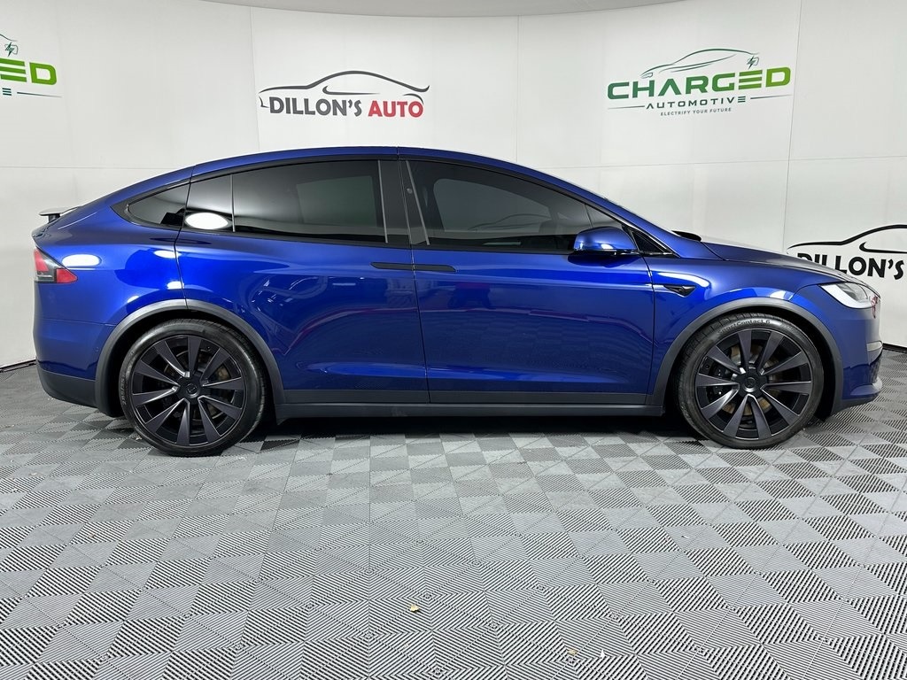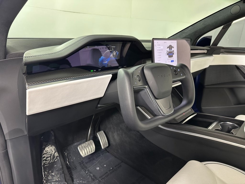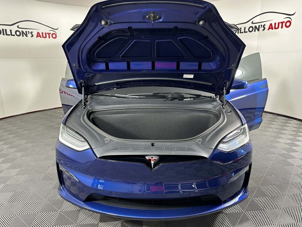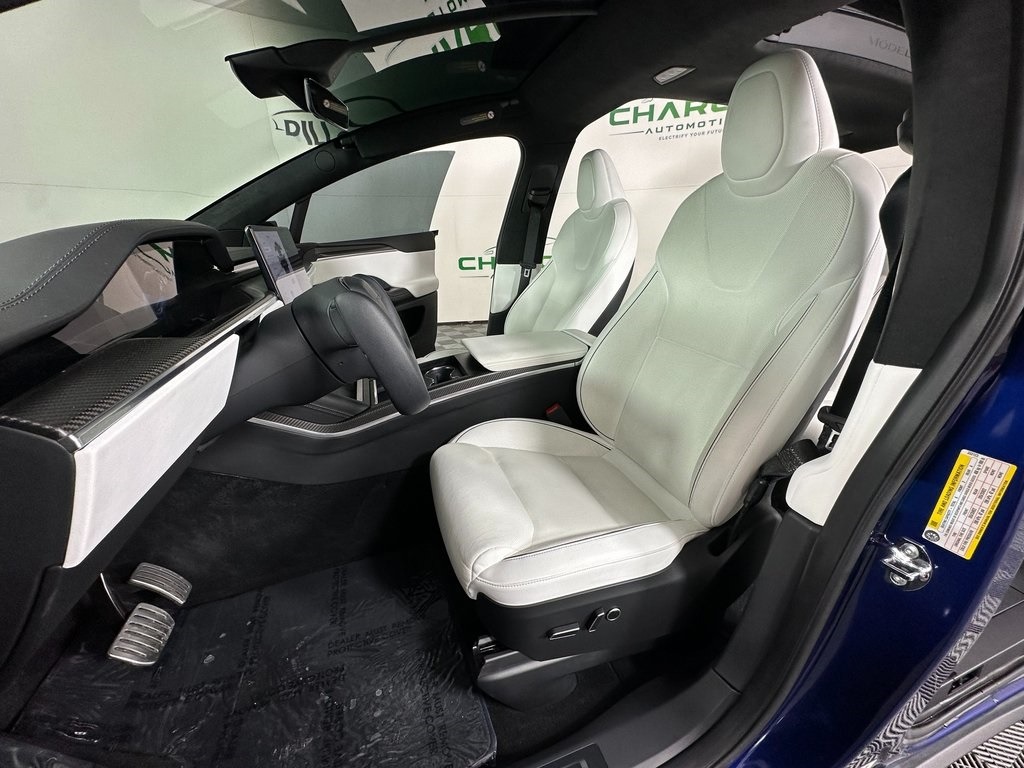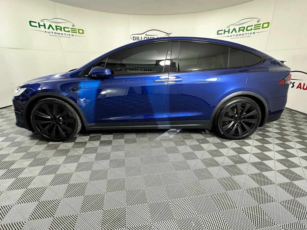 Blue 2022 Tesla Model X Plaid AWD 1-Speed Automatic Electric Motor Full Self-Driving Capability, Wheels: 22″ Turbine, White & Black Premium Interior.