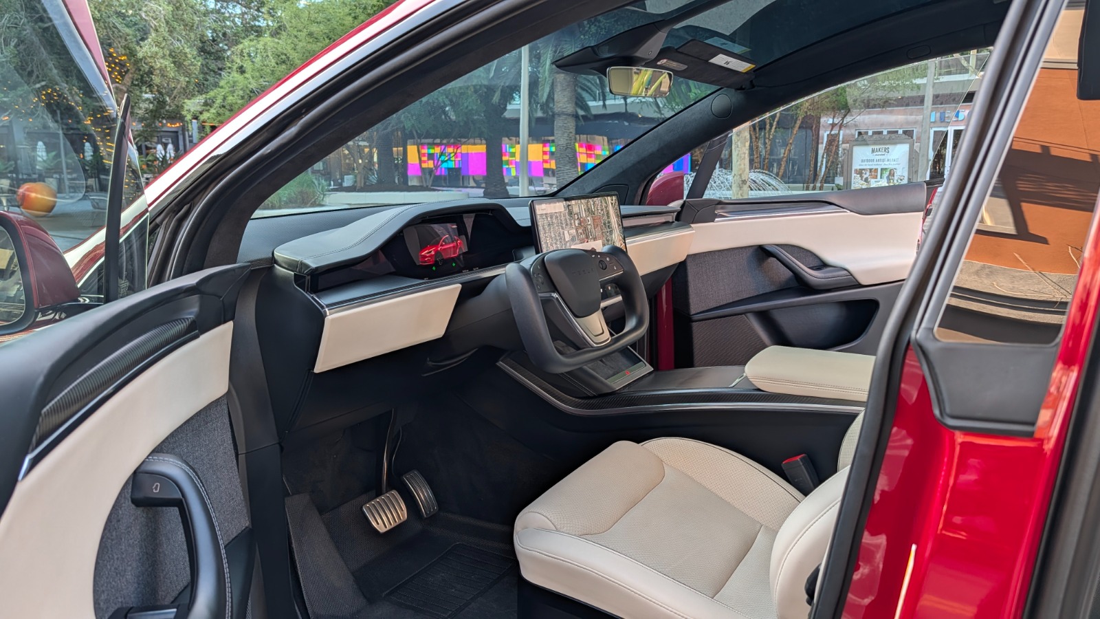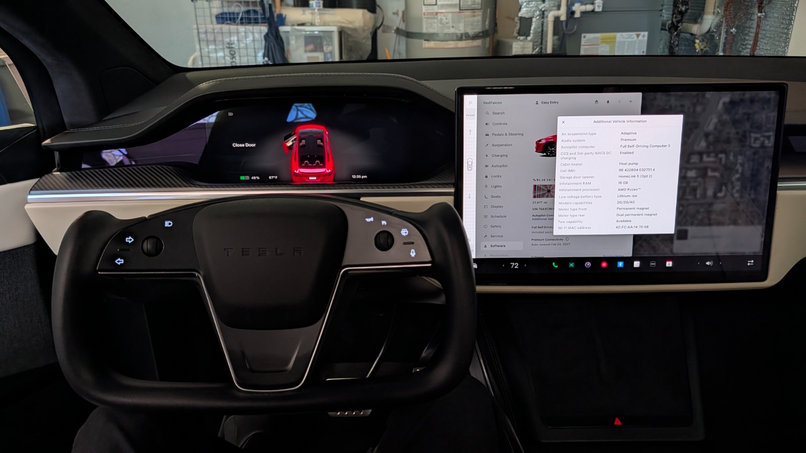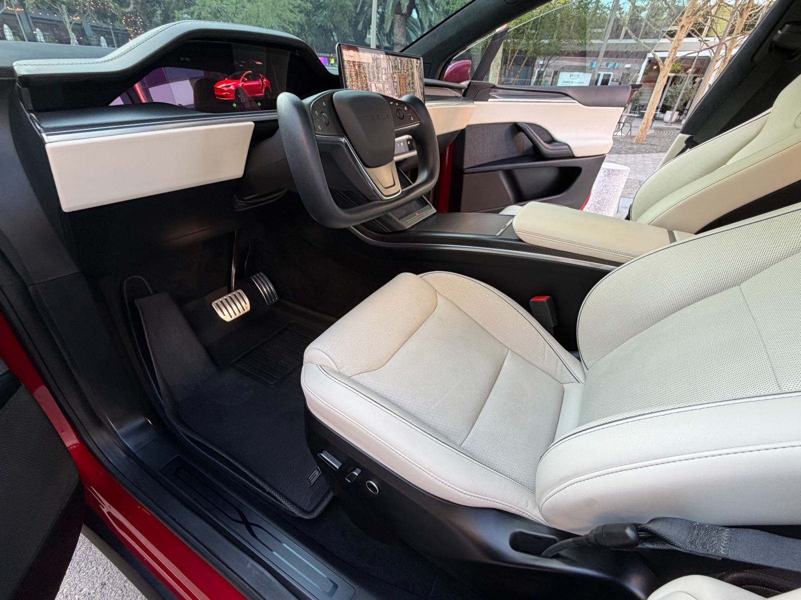 Model X Plaid in Red Multi-Coat with premium cream interior. Well-kept, highly optioned example with transferable Full Self-Driving and thoughtful upgrades.