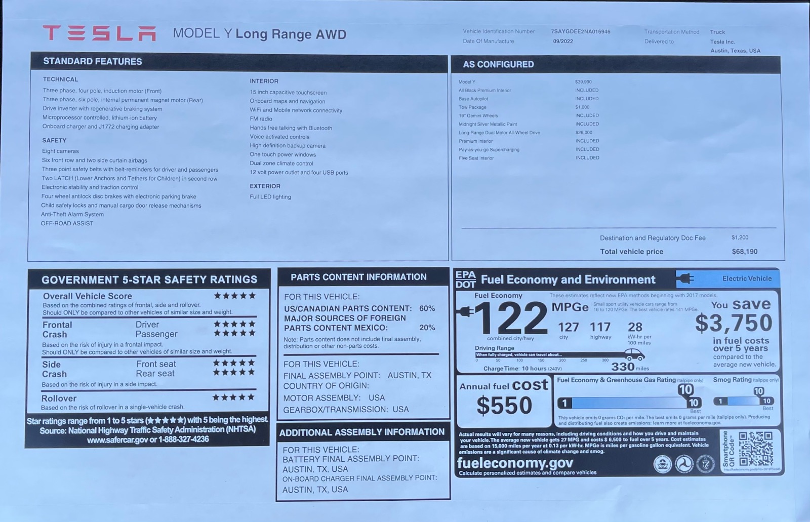 Austin built model Y great quality. Includes midnight silver metallic color and tow package. Save on Teslas $1200 on destination fee.