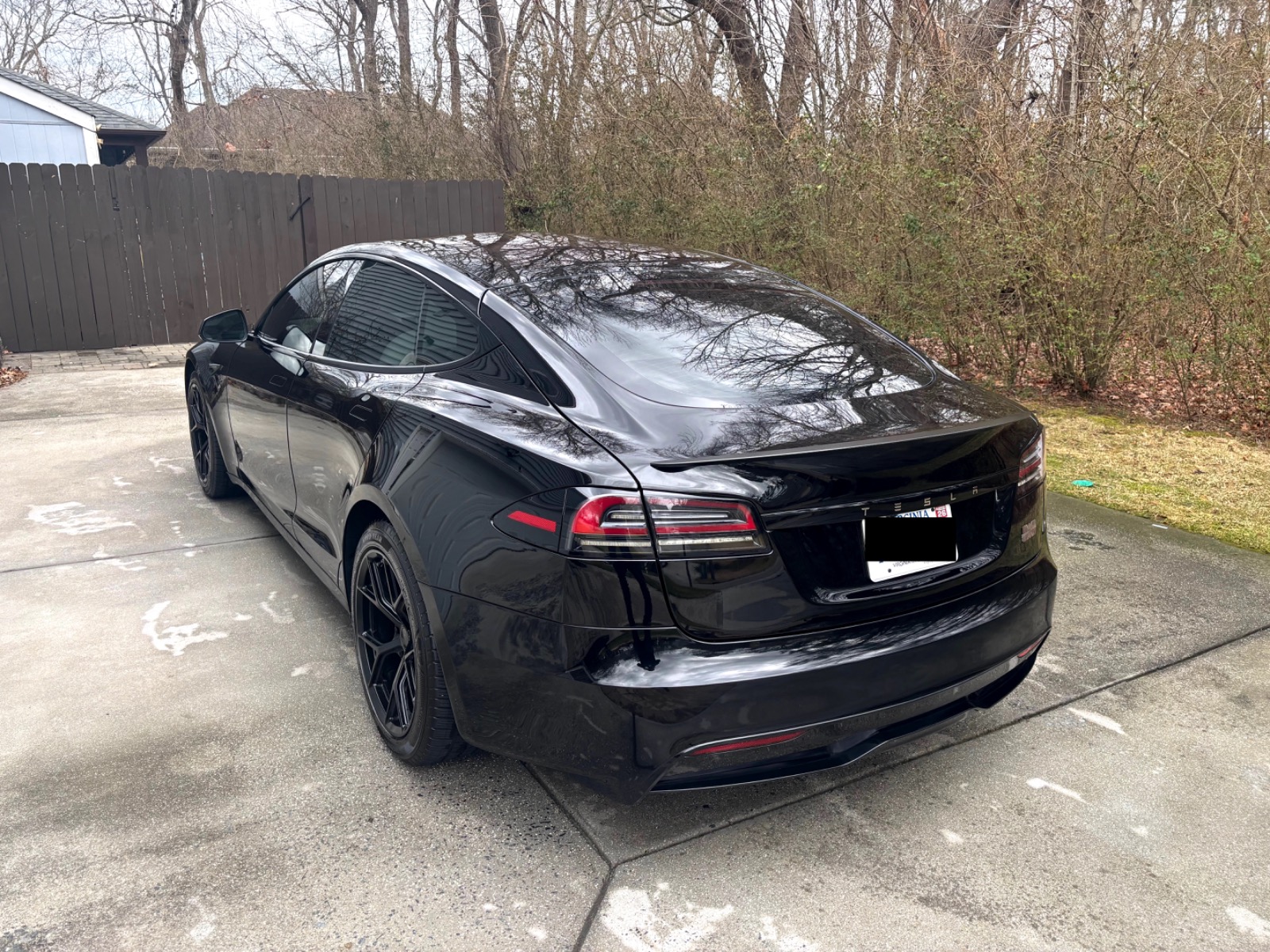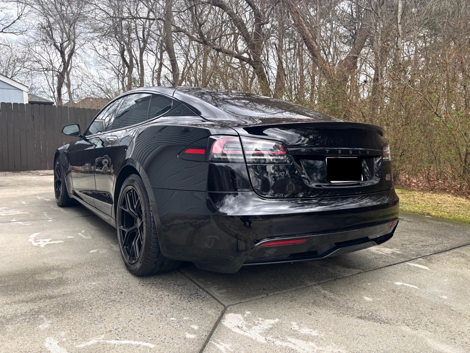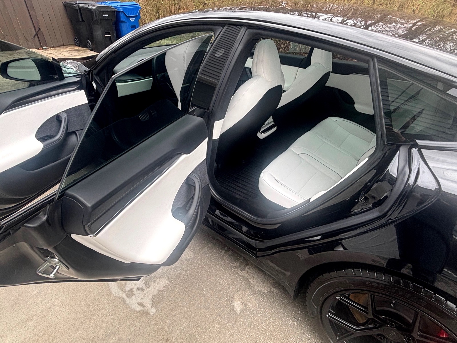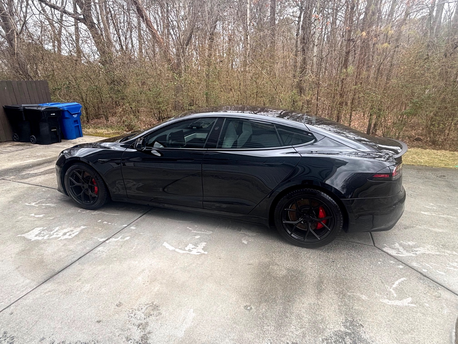 This Plaid comes with targeted upgrades that improve comfort, handling, efficiency, and autonomy. The driver’s front seat and rear seats were replaced by Tesla in 2025, returning them to full factory support and condition. It was upgraded from the original yoke to a round steering wheel in 2024, which delivers more precise and familiar steering feedback, easier parking and low-speed control, and reduced fatigue on longer drives for many owners. The aftermarket 19″ Satin Black Martian Wheels (MW05) Forged set measures 19×9.5 45 front and 19×10.5 45 rear, finished with matching black titanium lug nuts. These forged wheels cut unsprung weight compared to stock cast rims, sharpen handling and acceleration response, improve ride compliance over bumps, maintain or slightly increase real-world range/efficiency, and provide higher strength (JWL/VIA certified). Windows received professional tint in 2023 for privacy and interior UV protection.