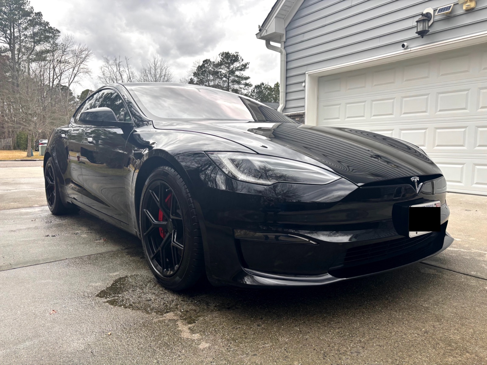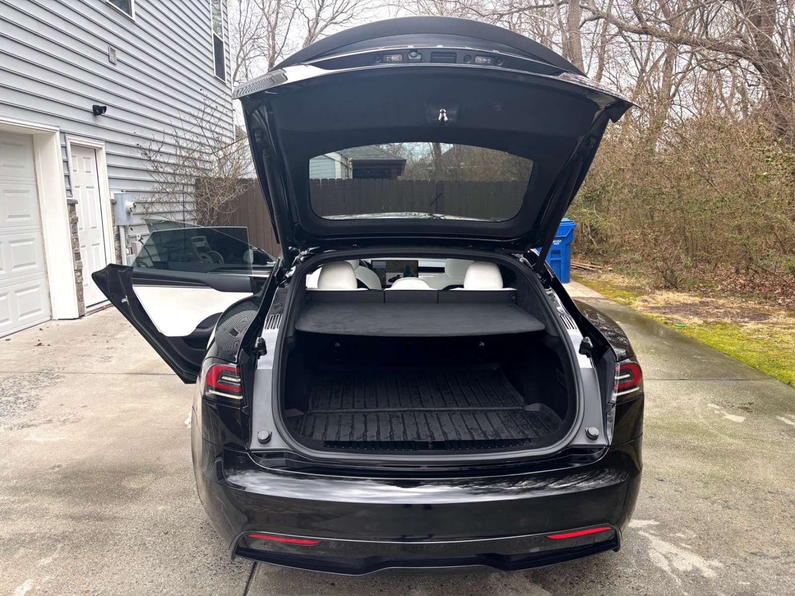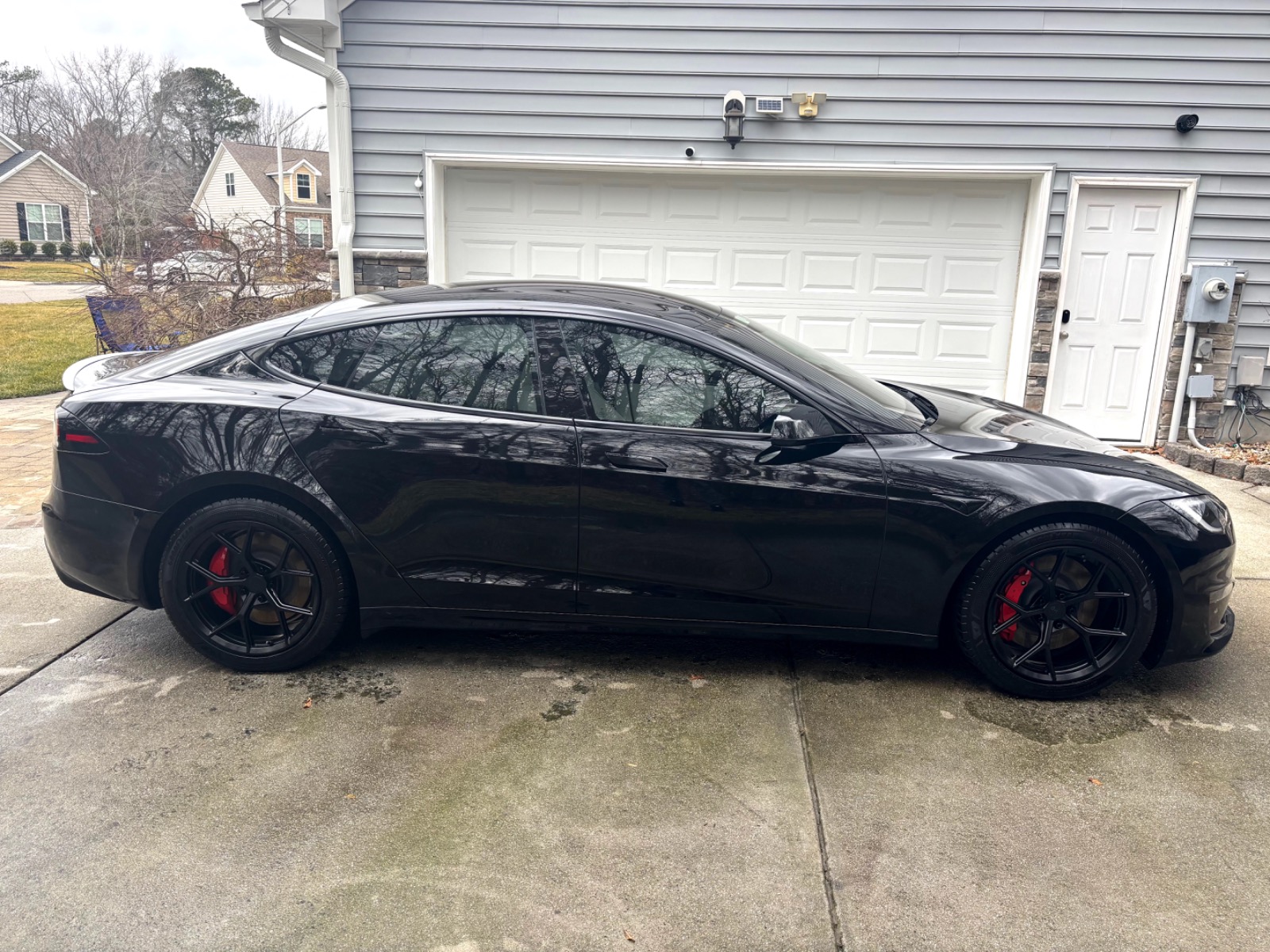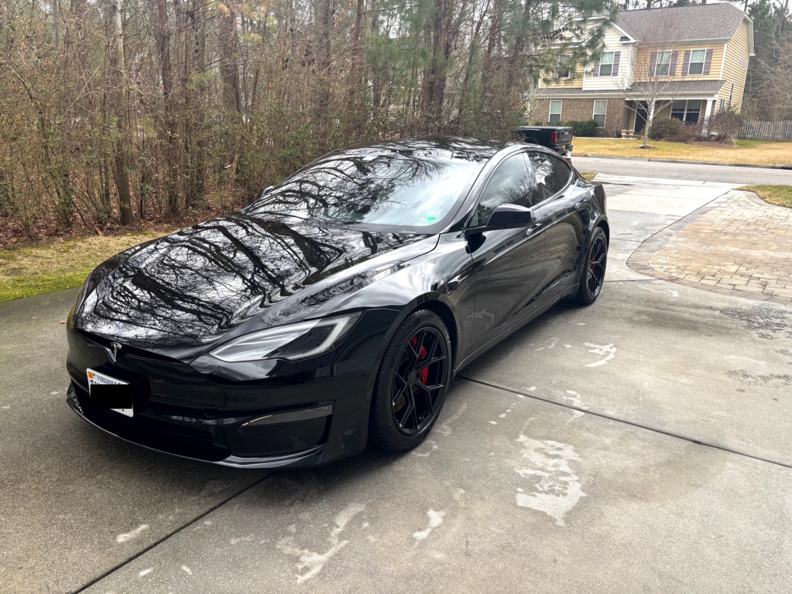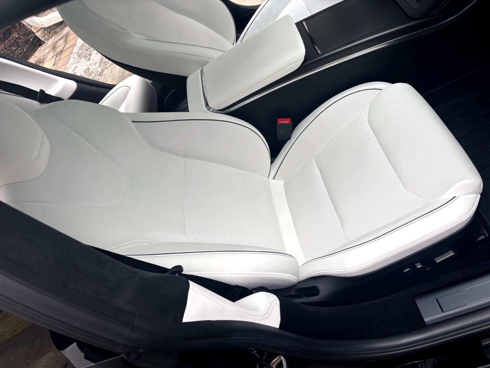 This Plaid comes with targeted upgrades that improve comfort, handling, efficiency, and autonomy. The driver’s front seat and rear seats were replaced by Tesla in 2025, returning them to full factory support and condition. It was upgraded from the original yoke to a round steering wheel in 2024, which delivers more precise and familiar steering feedback, easier parking and low-speed control, and reduced fatigue on longer drives for many owners. The aftermarket 19″ Satin Black Martian Wheels (MW05) Forged set measures 19×9.5 45 front and 19×10.5 45 rear, finished with matching black titanium lug nuts. These forged wheels cut unsprung weight compared to stock cast rims, sharpen handling and acceleration response, improve ride compliance over bumps, maintain or slightly increase real-world range/efficiency, and provide higher strength (JWL/VIA certified). Windows received professional tint in 2023 for privacy and interior UV protection.
