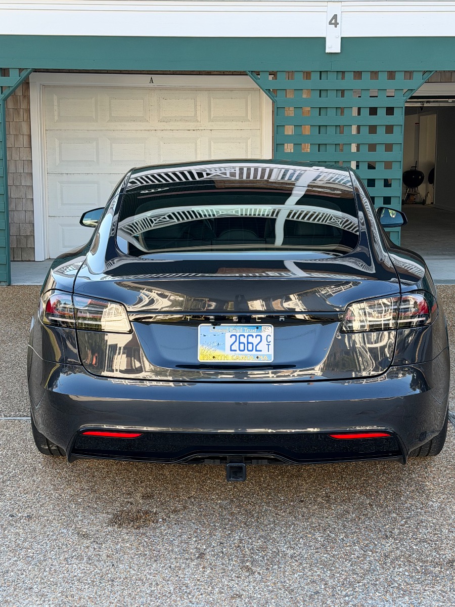 2024 Tesla Model S in Stealth Gray in excellent condition. Transferable warranty good until 11/27 or 50k miles. Hitch added for bike rack – looks great with 1Up single bike rack and still allows access to trunk.