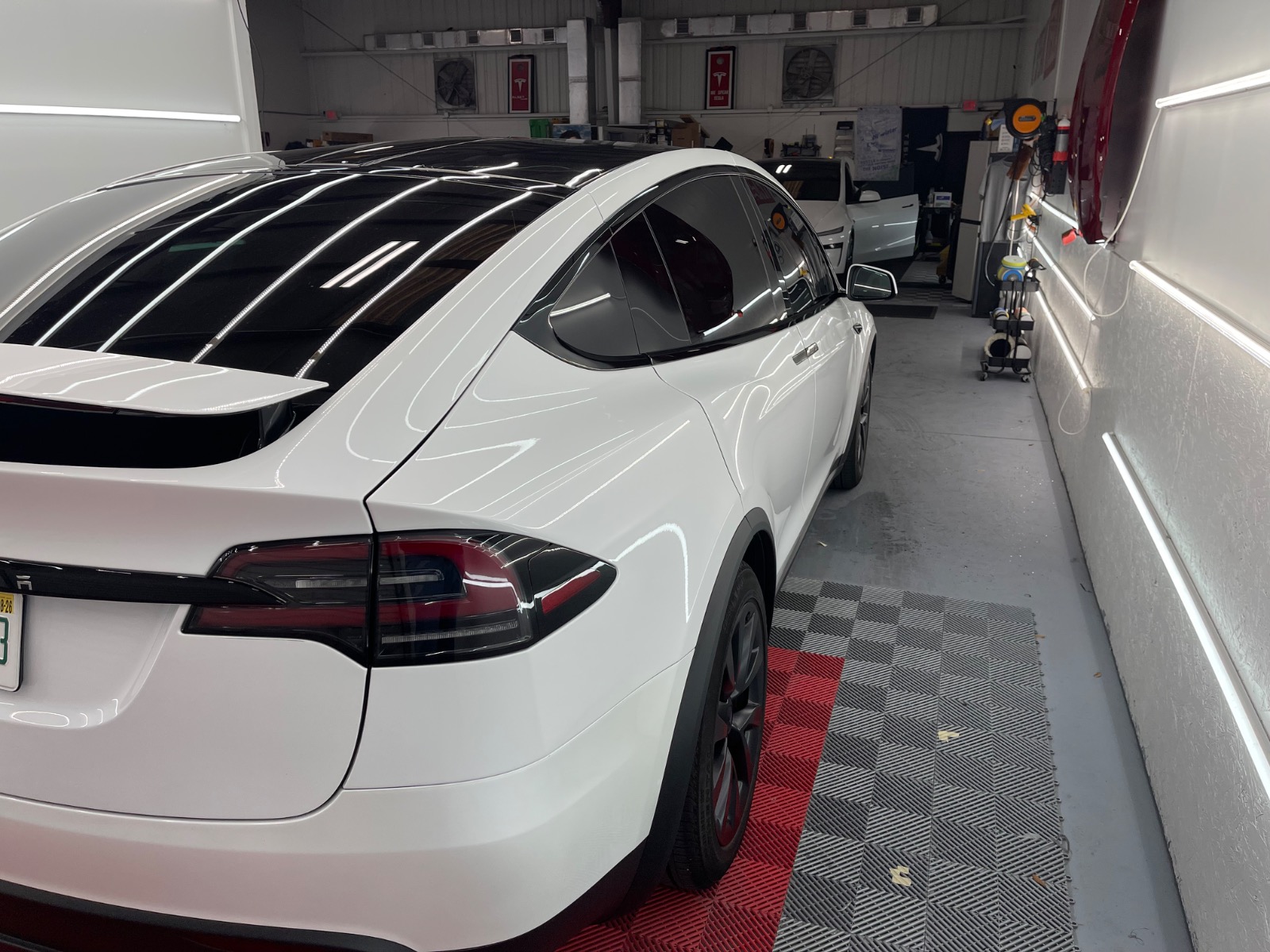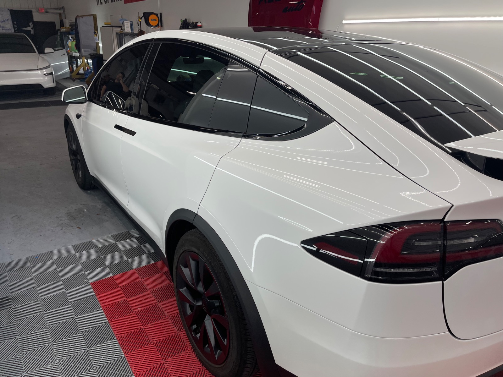 This Model X comes fully equipped with Tesla’s Full Self-Driving (FSD) capability – an $8,000 upgrade that’s transferable and unlocks advanced autopilot features for safer, more convenient highway and city driving. Plus, it’s protected by a professional full-body XPEL Paint Protection Film (PPF) wrap, complemented by high-end ceramic coating on both the interior and exterior surfaces for ultimate shine, durability, and resistance to UV rays, dirt, and debris. The front windows feature a precise 15% tint to seamlessly match the factory rear passenger windows, enhancing privacy and reducing glare while keeping that sleek, cohesive look – all expertly installed by Alset Auto in Jacksonville.