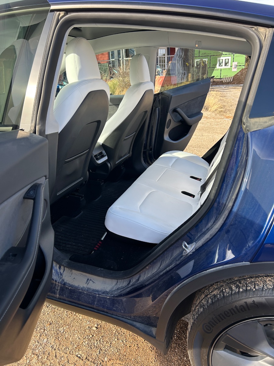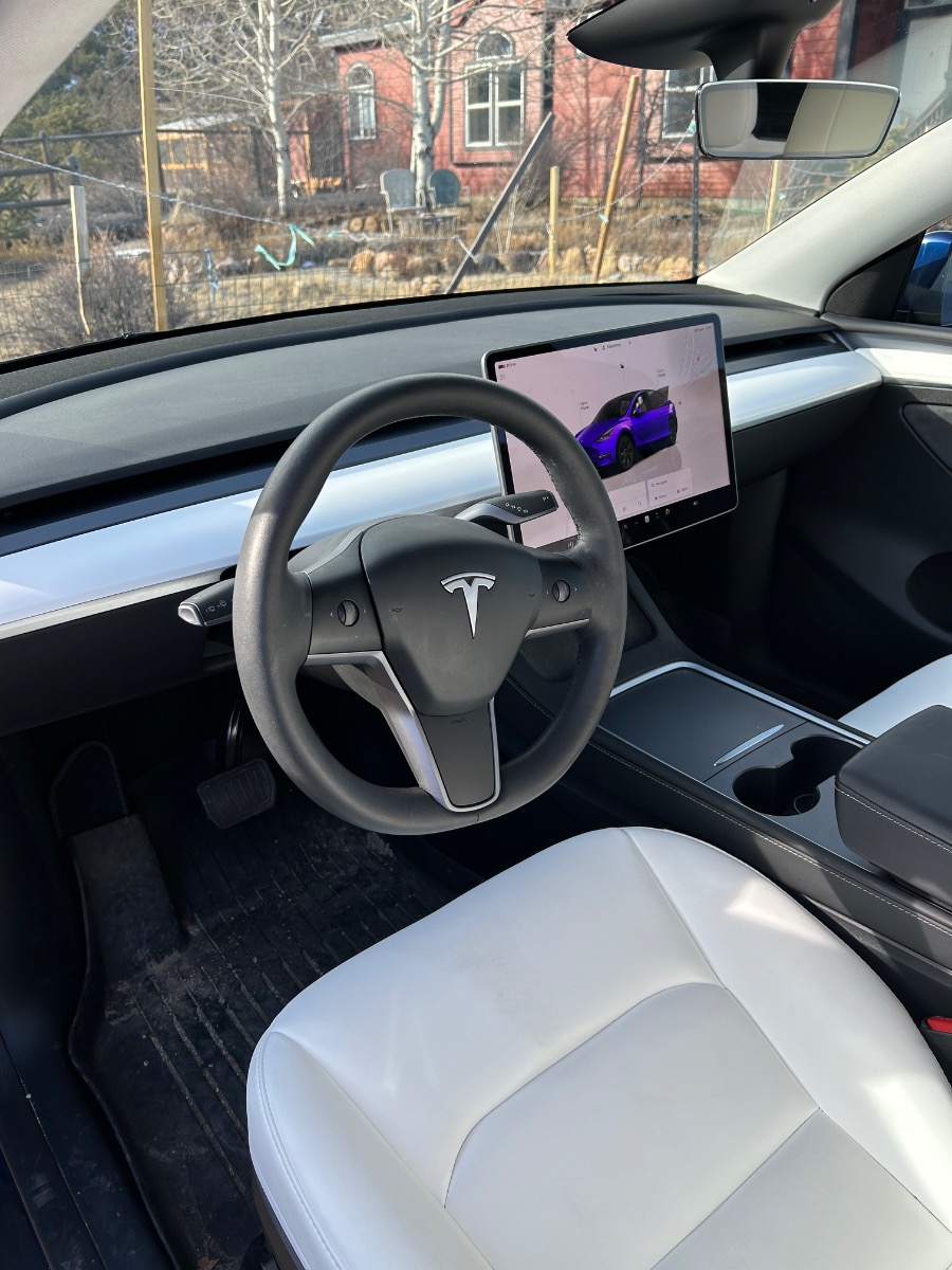 Meet Oliver. A peppy dun loving Tesla y(SUV) he is eager for adventure. With all wheel drive, each wheel acts independently hewing up snow and Colorados dirt road with aplomb. Oliver has a blue exterior and a super clean white and black interior that is plush, supportive and comfortable enough for all body types.