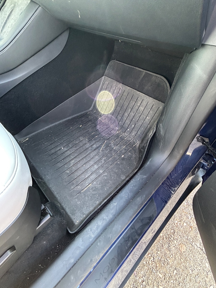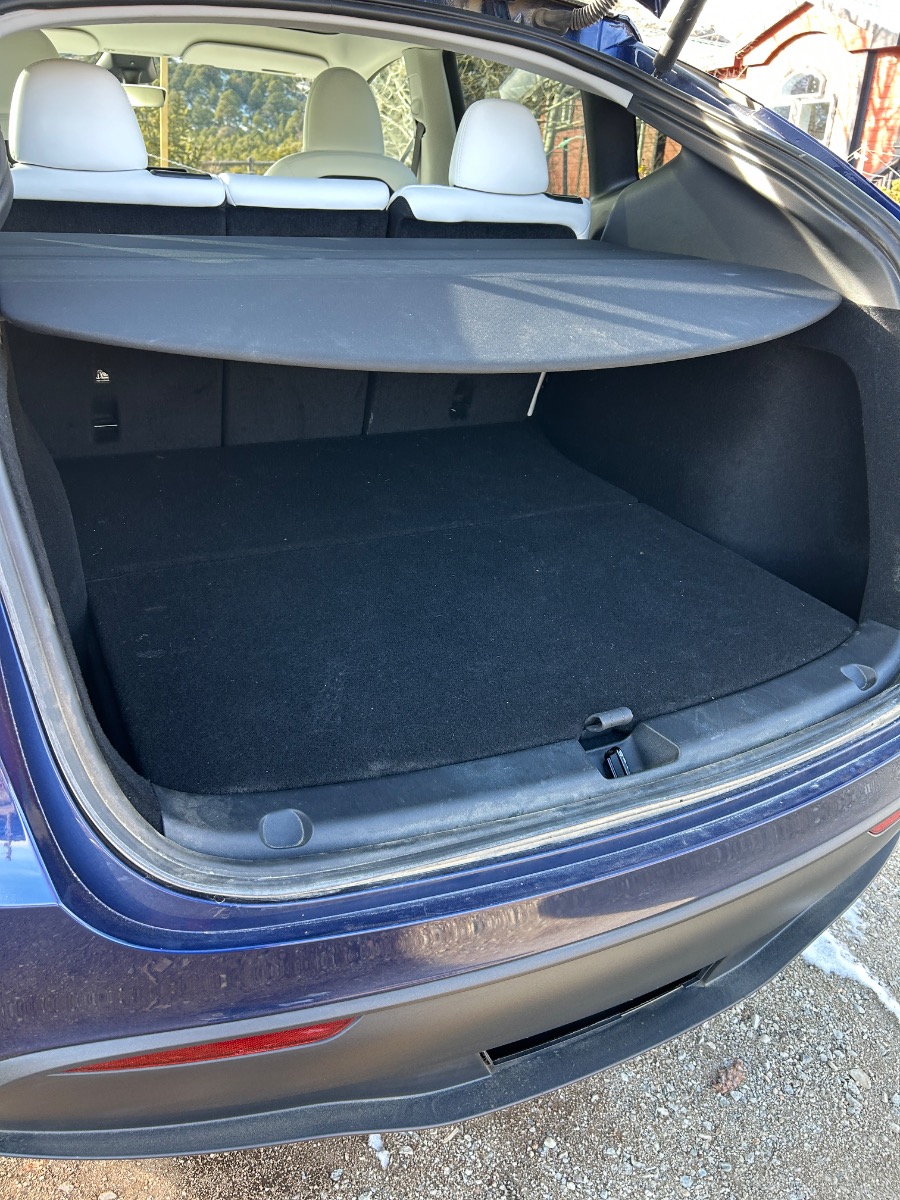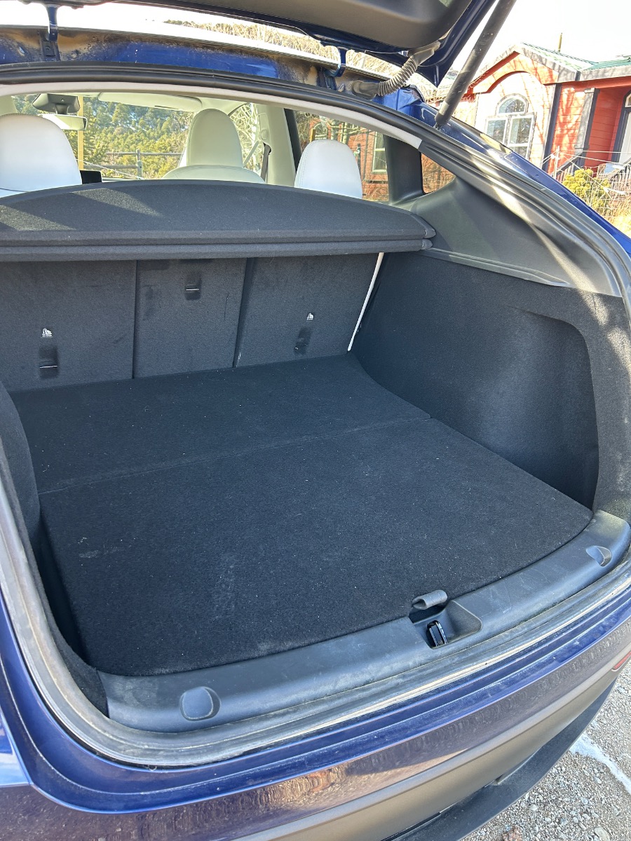 Oliver has thick durable winter ready Tesla black rubber floor mats, a Tesla cover for the back storage and Tesla storage boxes for the interior storage areas.