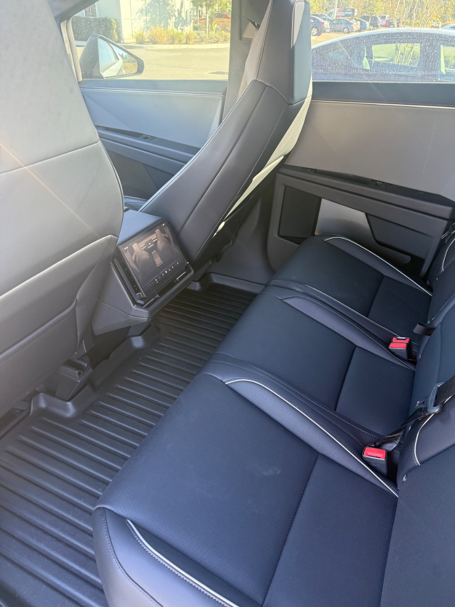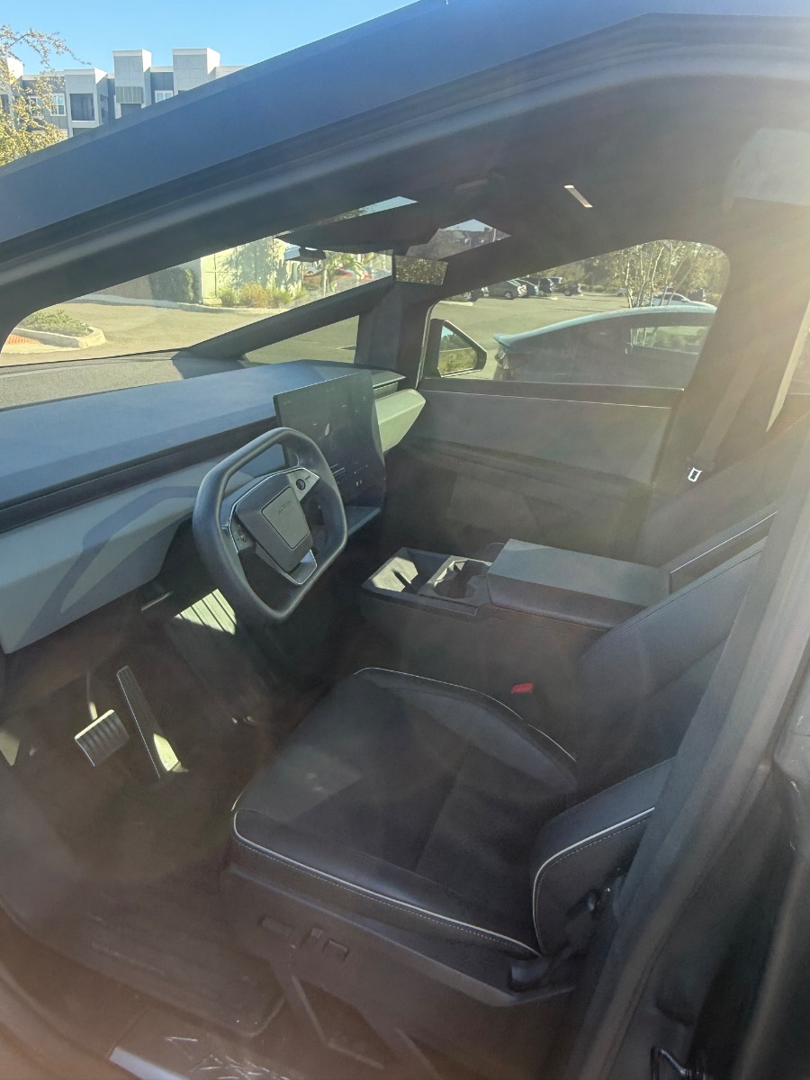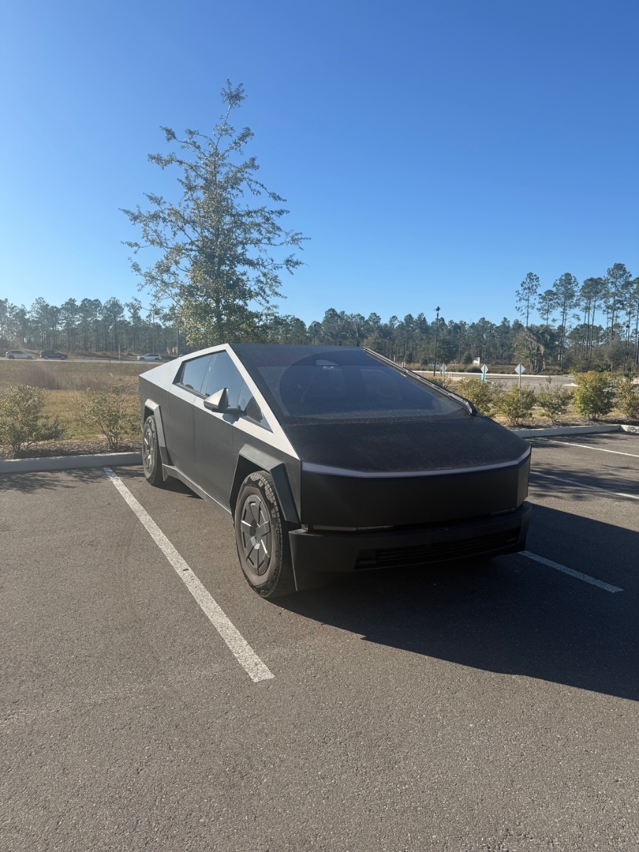 2025 Tesla Cybertruck. Matte black PPF Wrap and XPEL XR window tint. Custom, all weather floor mats. Anti glare screen protection on inside monitors.