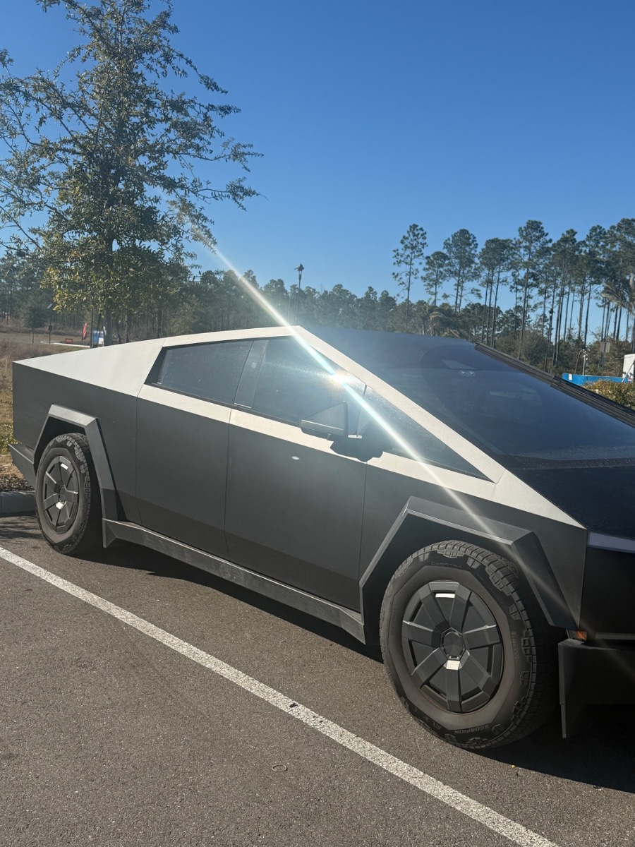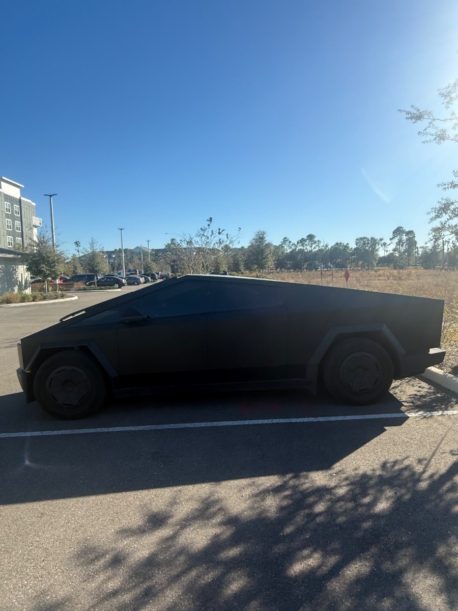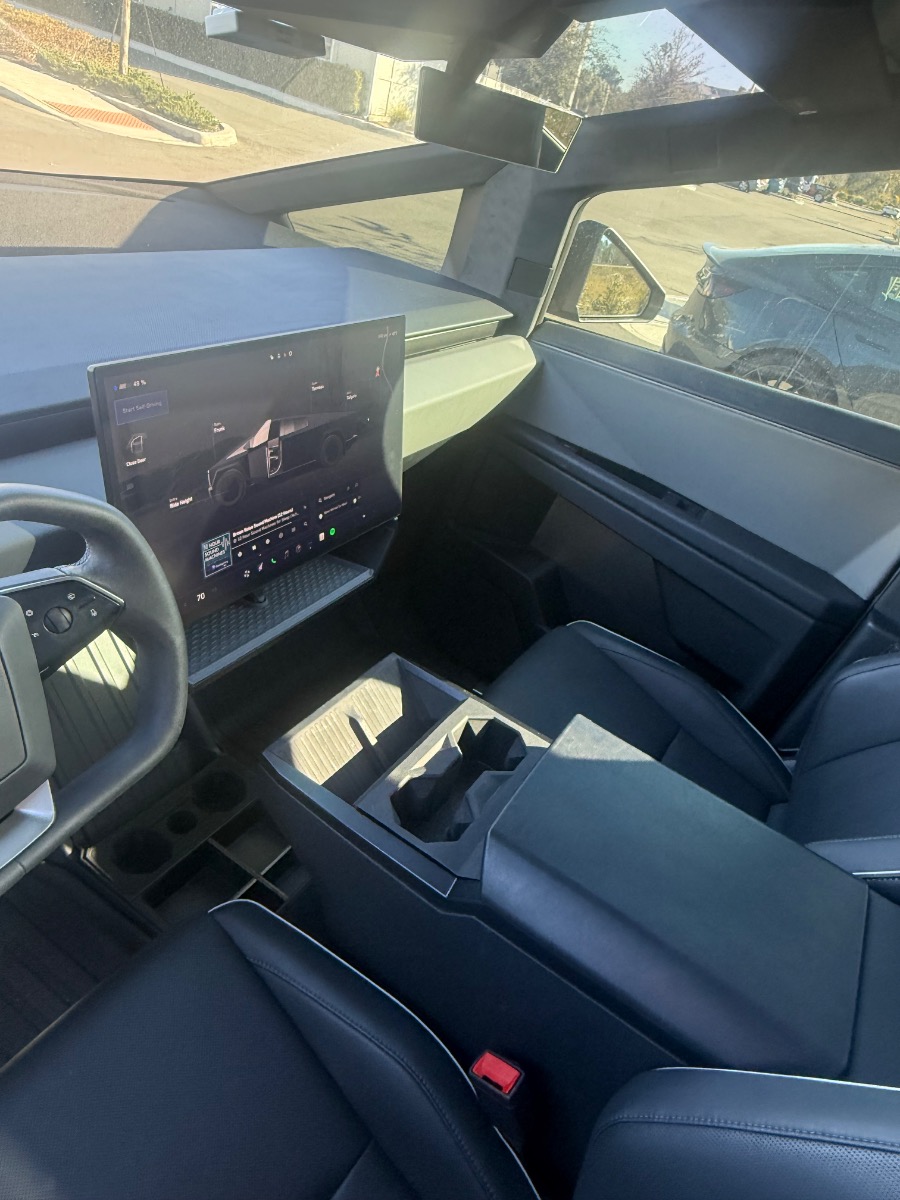 2025 Tesla Cybertruck. Matte black PPF Wrap and XPEL XR window tint. Custom, all weather floor mats. Anti glare screen protection on inside monitors.