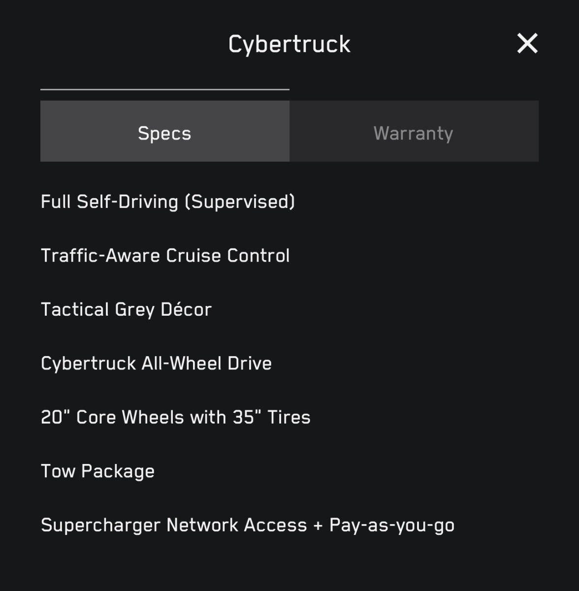 2025 dual motor AWD Cybertruck for sale, stock except for rim caps when the aerocovers are removed. I bought this truck new from Tesla Santa Fe in May 2025. It’s been into the service center one time to fix an issue with the tonneau cover, and that was 100% covered by the warranty. Other than that it’s been 100% flawless. The fully warranty still remains on the truck. No accidents. It’s in good condition. Some minor scratching on some of the black plastic. Wheels are in good shape. Clean NM title. It is under a bank note from Chase bank, so a purchase will have to include the payoff (which is below the asking price).